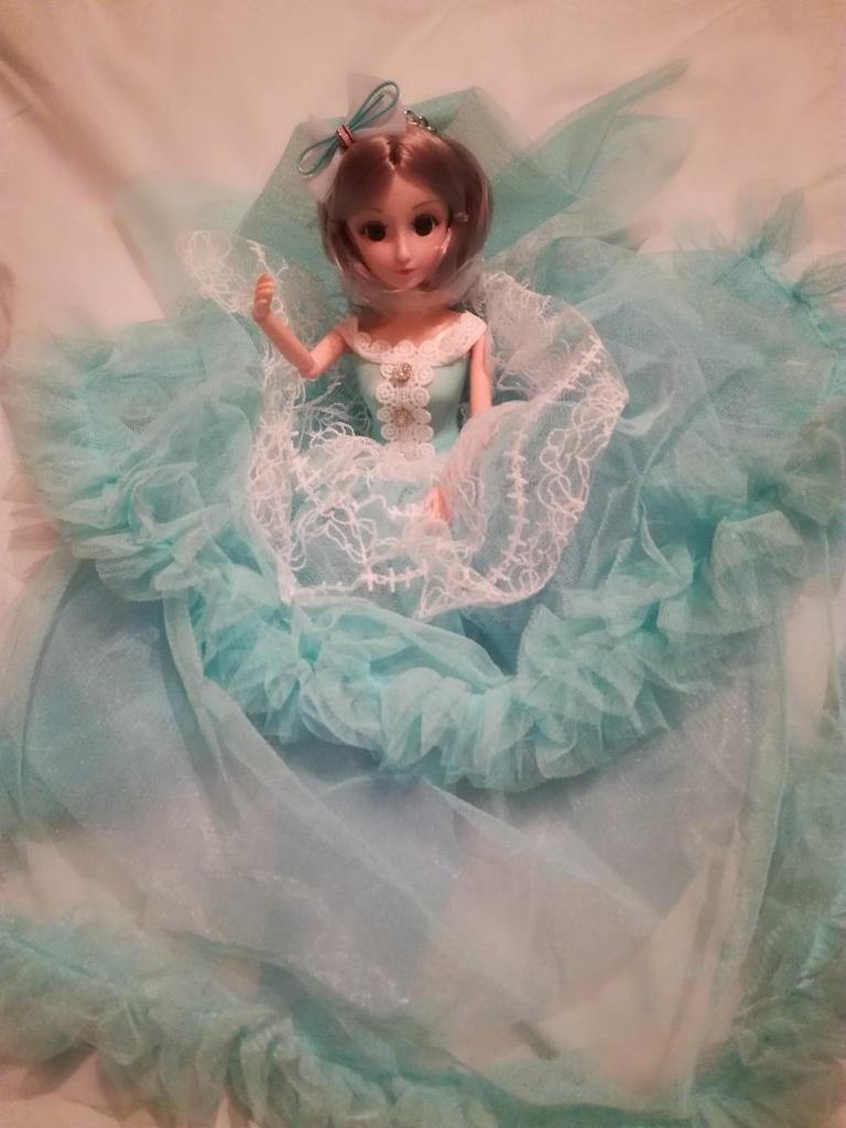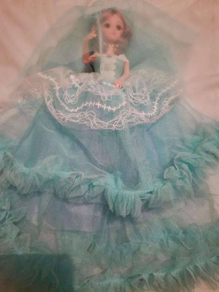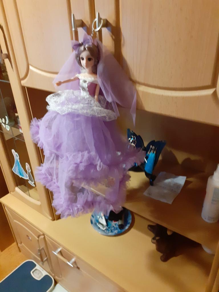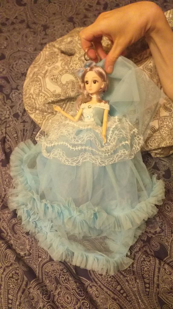 The dress is glued directly on the doll, it is not sewn, but simply glued on the doll in layers, the type of dress🙈terrible