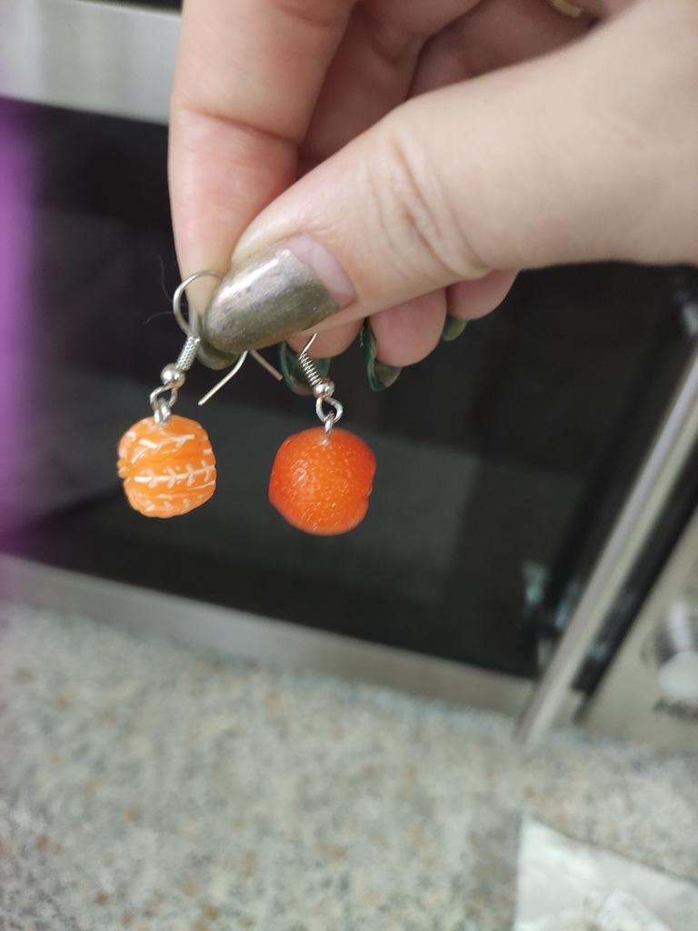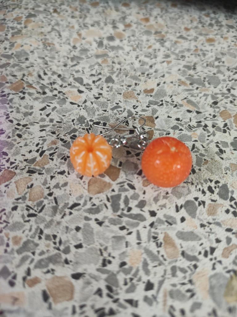 The earrings are very beautiful, delivered on time, very similar to real tangerines, the only difference from the real ones is the chopped bottom + the set includes claspsπππ