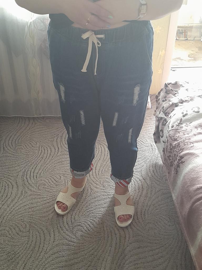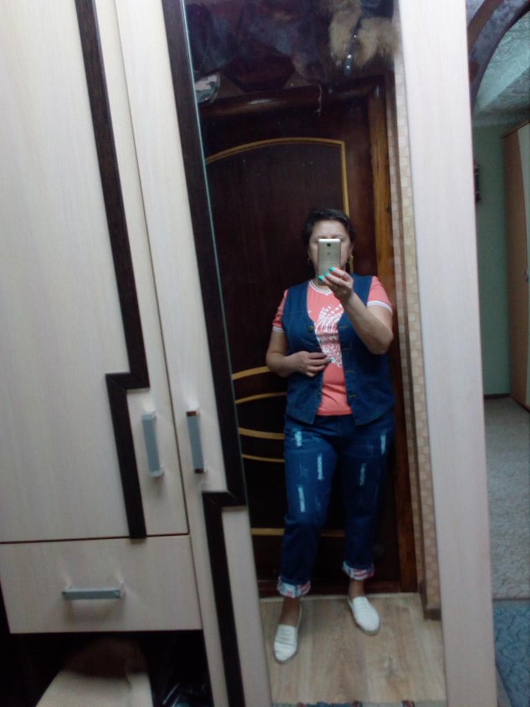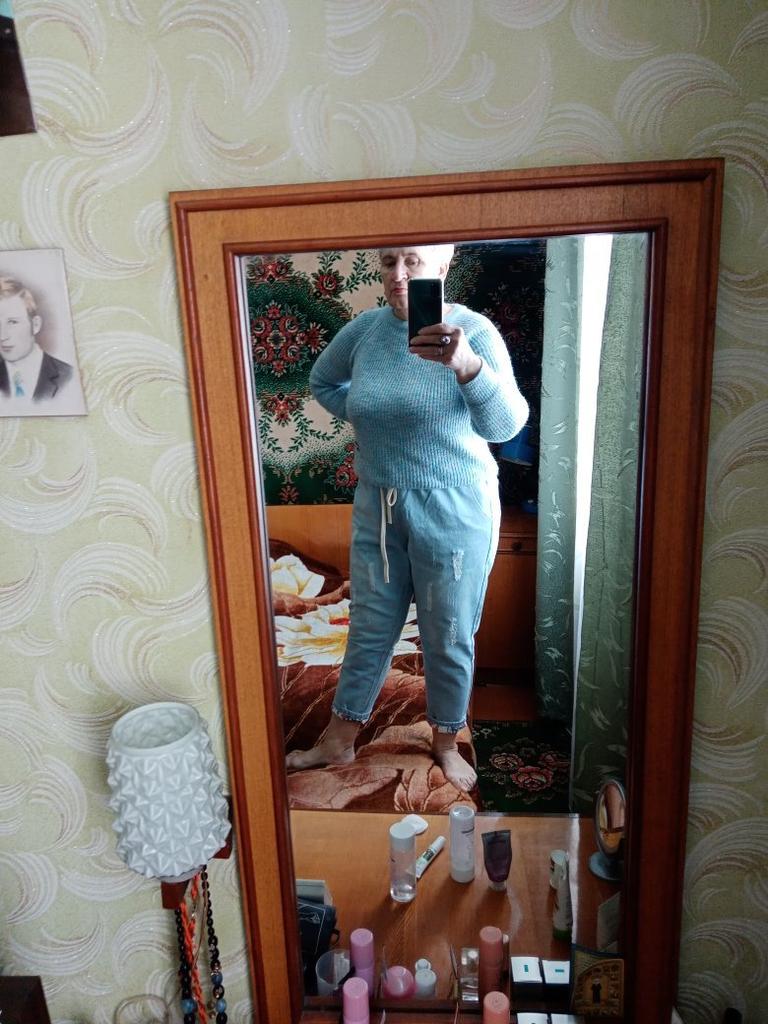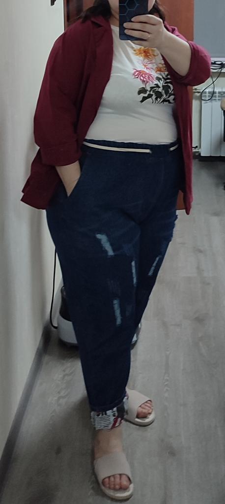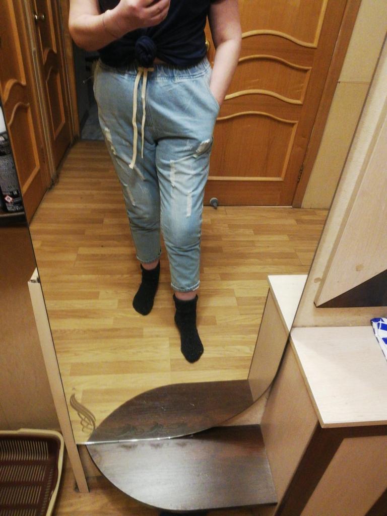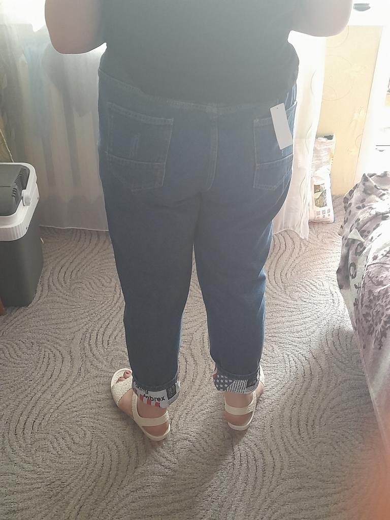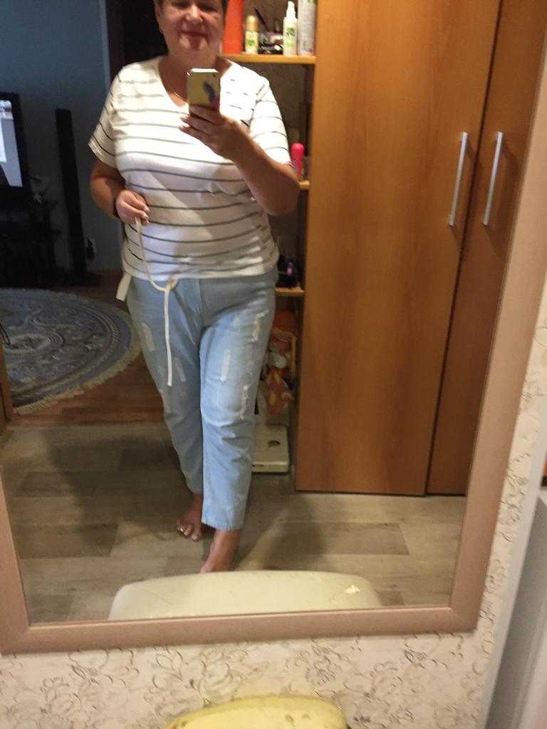 Very pleased with the purchase. I don’t like the way they look on my stomach, but that’s a question for me (I need to get rid of such volumes). I wear size 52 clothes. Jeans are just right. If you don't roll up the legs at the bottom, the length is fine. The color is soft blue. In short, very satisfied!!! Girls, order a size smaller, I think then your belly won’t seem so big