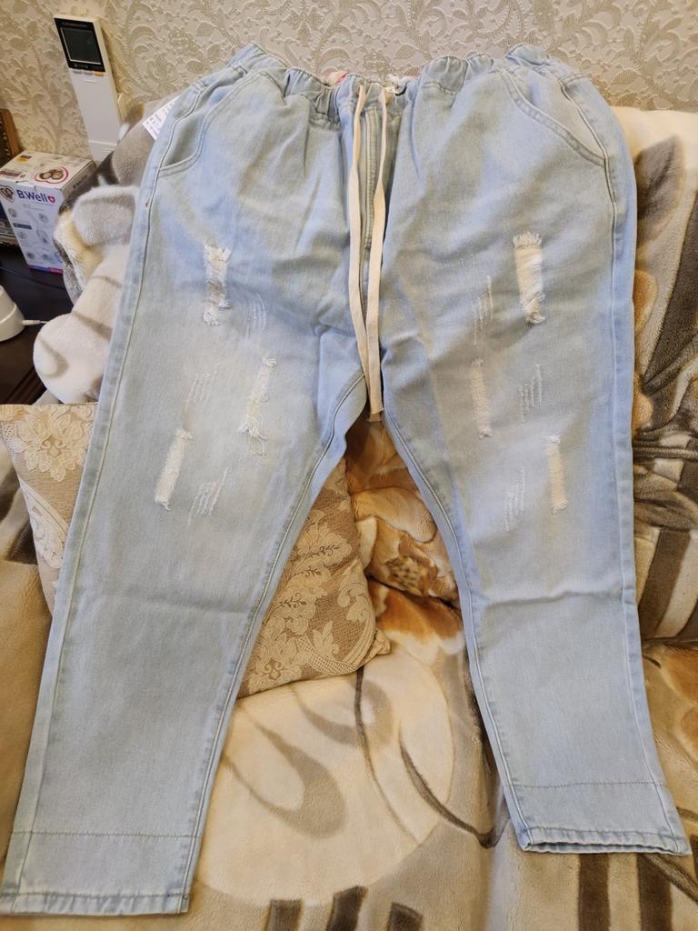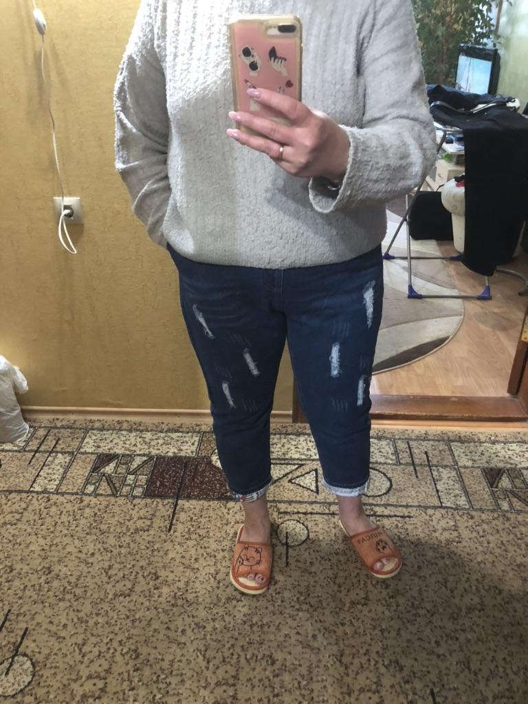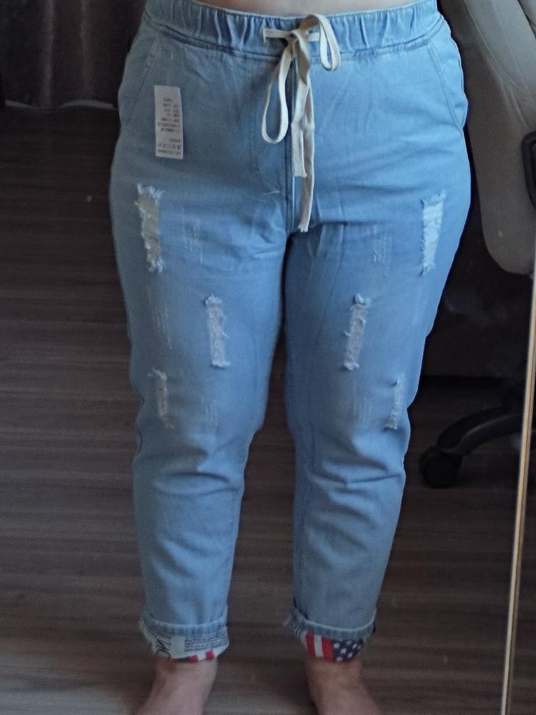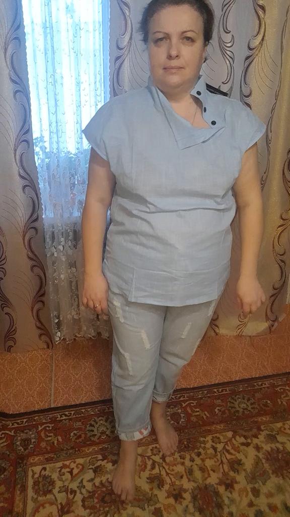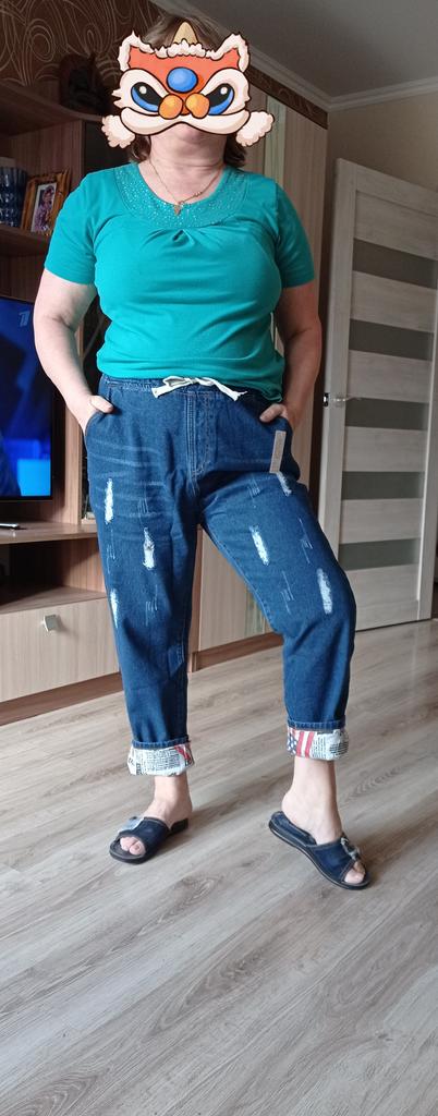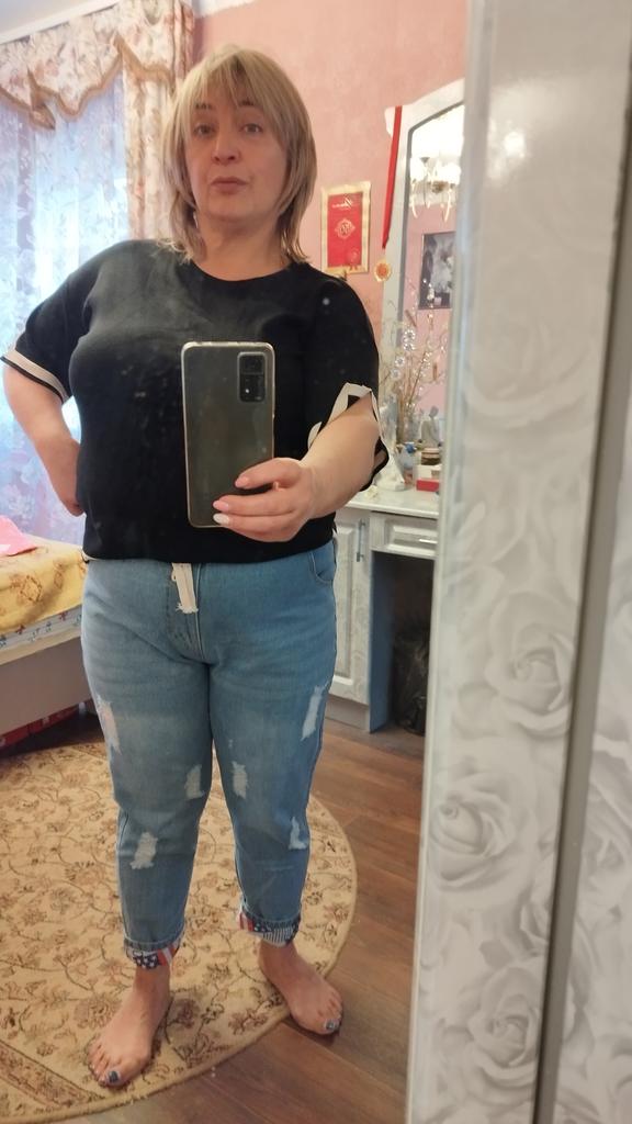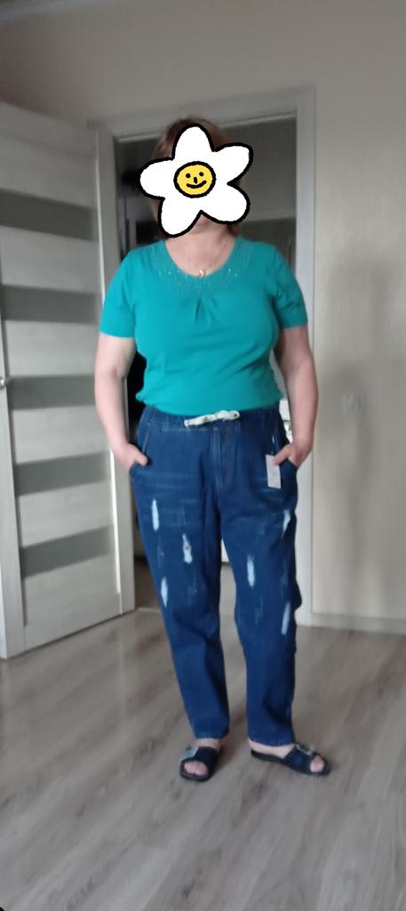Very pleased with the purchase. I don’t like the way they look on my stomach, but that’s a question for me (I need to get rid of such volumes). I wear size 52 clothes. Jeans are just right. If you don't roll up the legs at the bottom, the length is fine. The color is soft blue. In short, very satisfied!!! Girls, order a size smaller, I think then your belly won’t seem so big