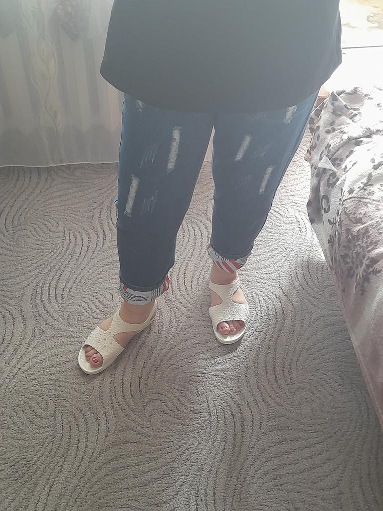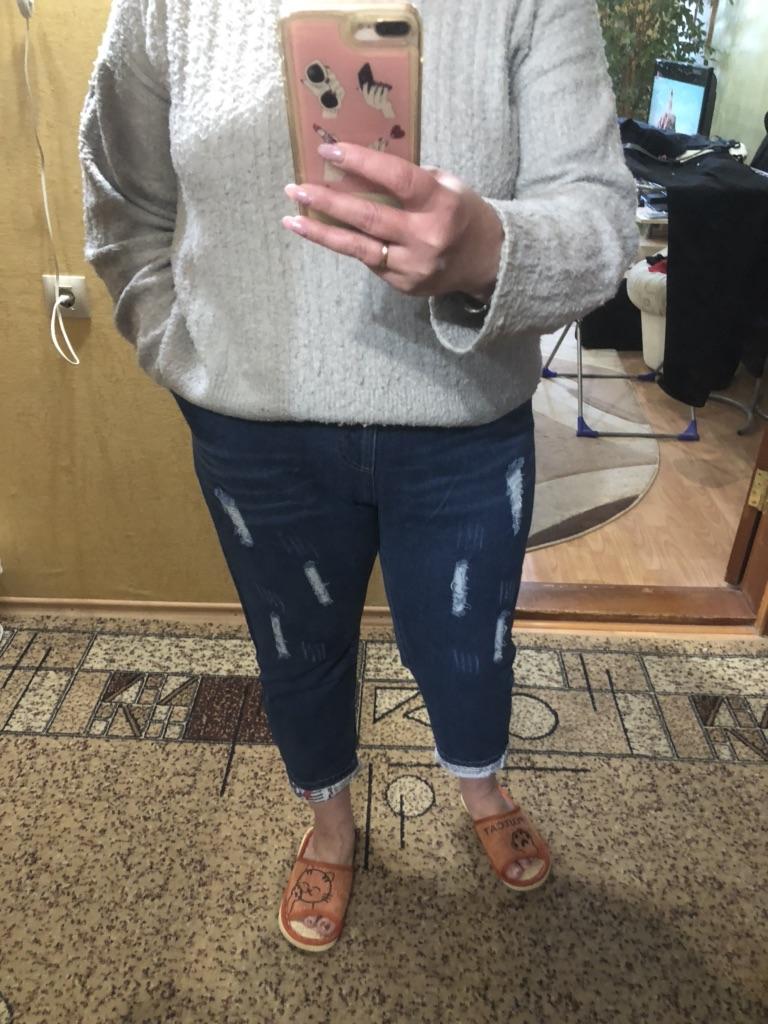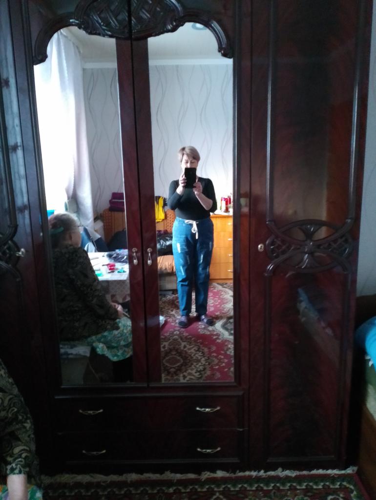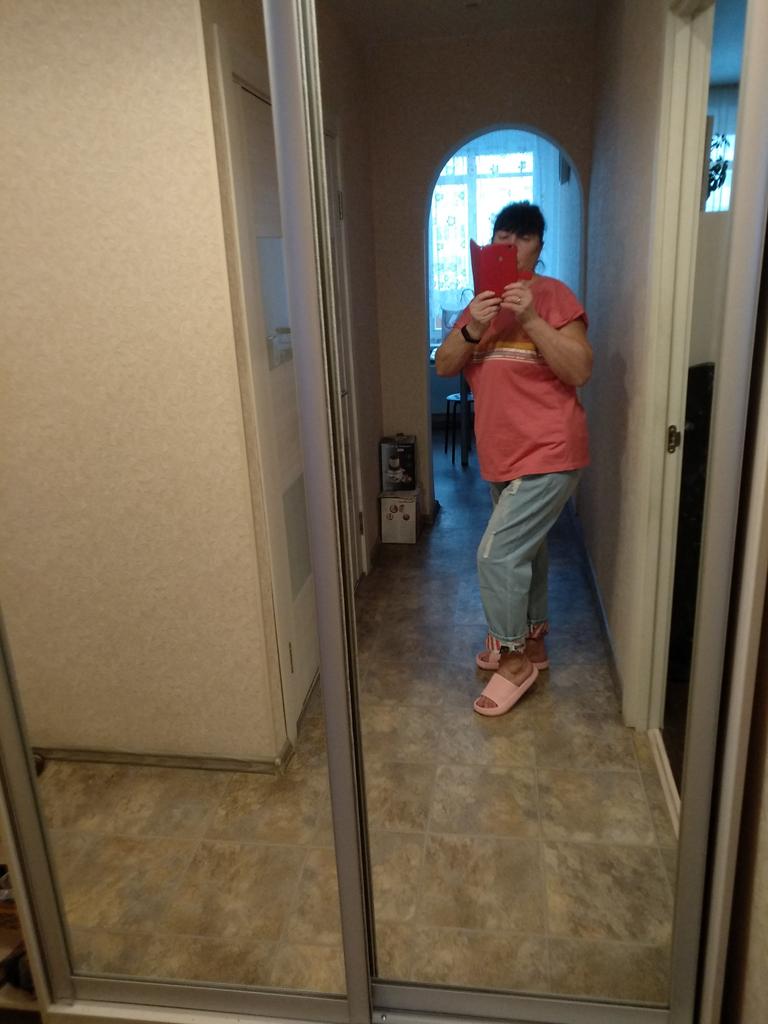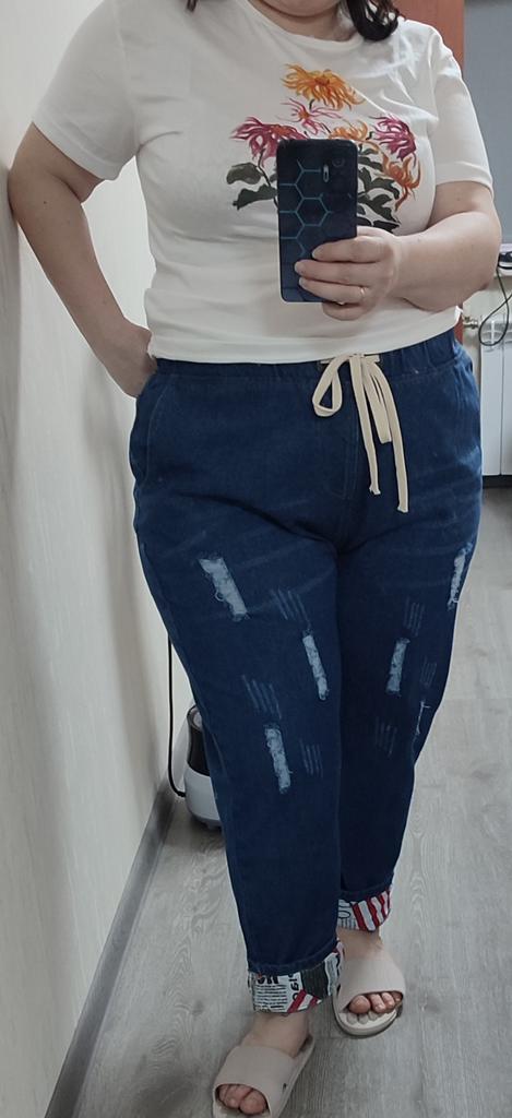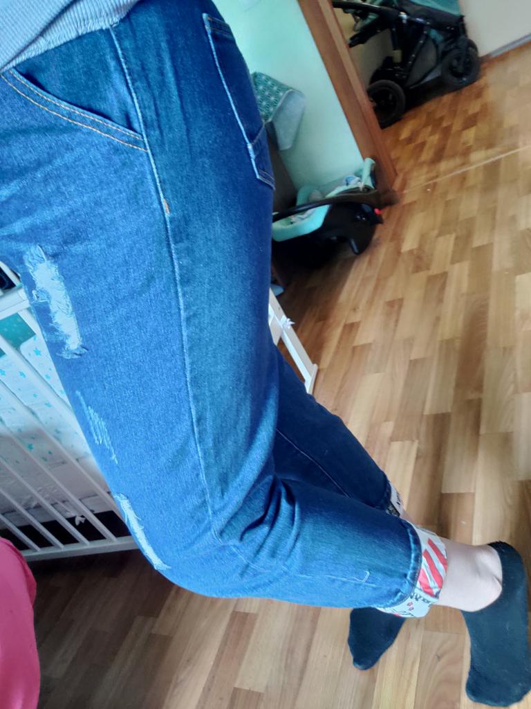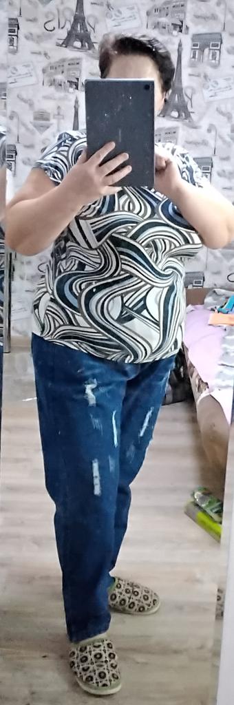 Very pleased with the purchase. I don’t like the way they look on my stomach, but that’s a question for me (I need to get rid of such volumes). I wear size 52 clothes. Jeans are just right. If you don't roll up the legs at the bottom, the length is fine. The color is soft blue. In short, very satisfied!!! Girls, order a size smaller, I think then your belly won’t seem so big