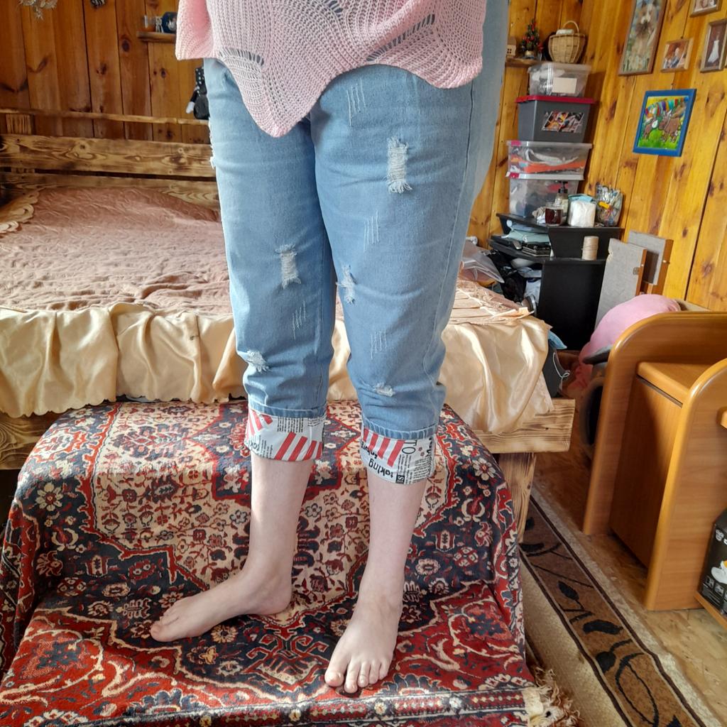 When ordering, refer to the size chart. The material does not stretch. Comfortable, just what I expected. But I was wrong about the length, my legs are long and my jeans only go to the ankles. In winter I will tuck it into my socks, and in summer this length will be fine.