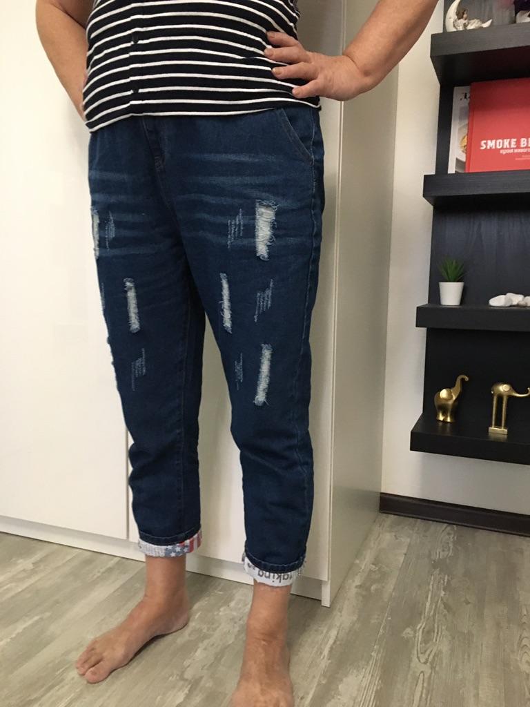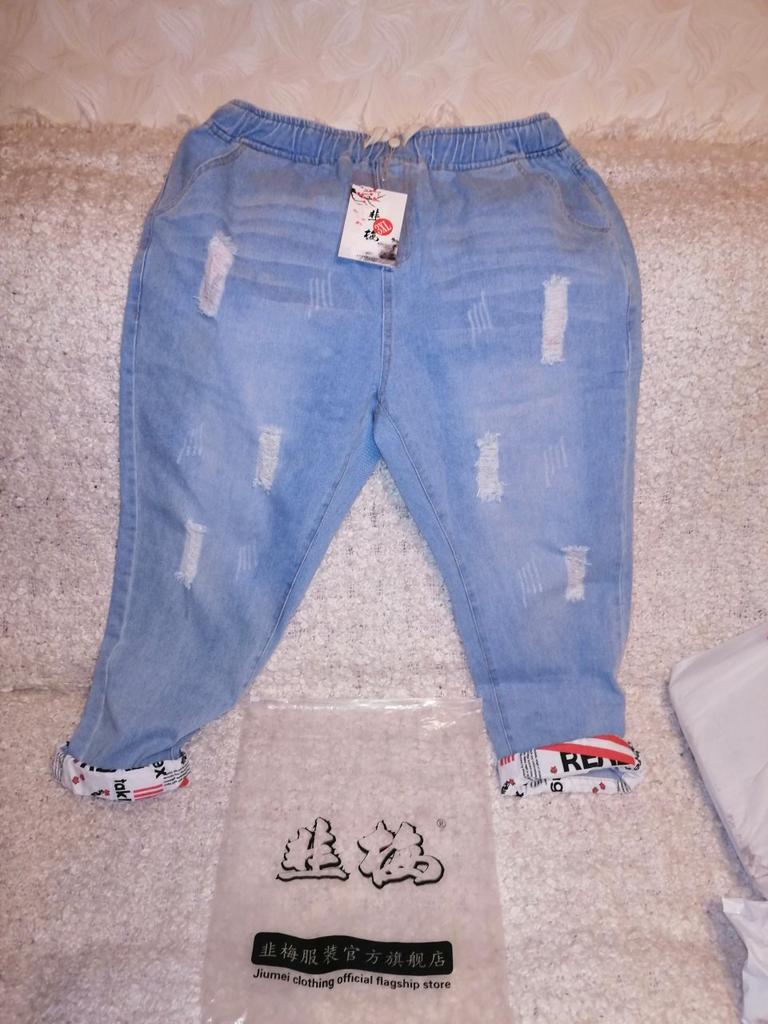 Women Spring and Autumn Large Size High Waist Casual Trousers Loose Hole Jeans Denim Cropped Pants
