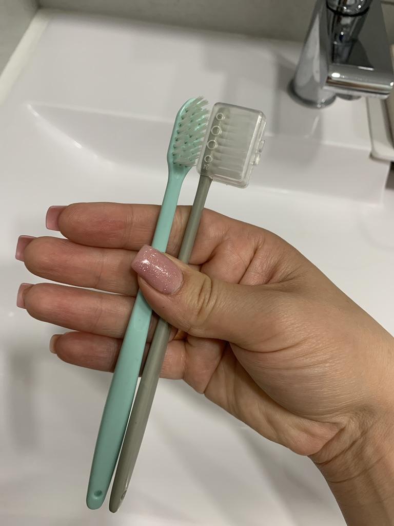 A set of toothbrushes, small and sturdy, each has a case for the bristles, for traveling, for both adults and children, a great find! 😁👍