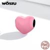 WOSTU Enamel Smooth Red , Pink and Blue Three-color Heart Shape 925 Sterling Silver Charm Beads Fit Bracelet Bangle Fine Jewelry