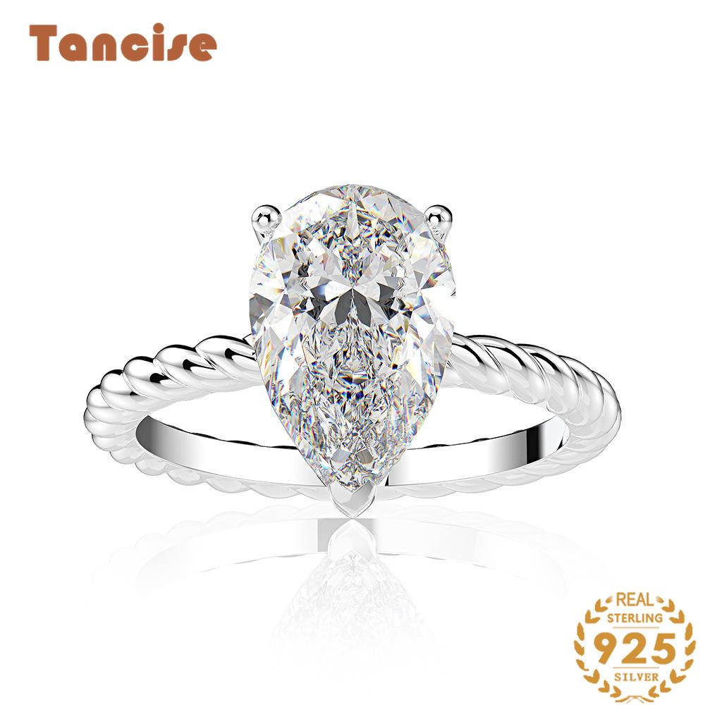 Tancise Classic 925 Sterling Silver Zircon Ring Ladies Jewelry Wedding Promise Party Gift