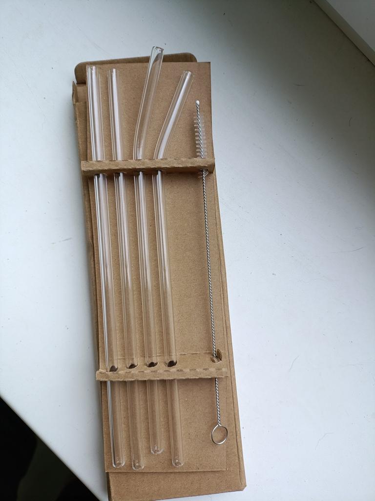 5Pcs Transparent Glass Straight Bend Straws Cleaning Brush Beverage Drinks Bar