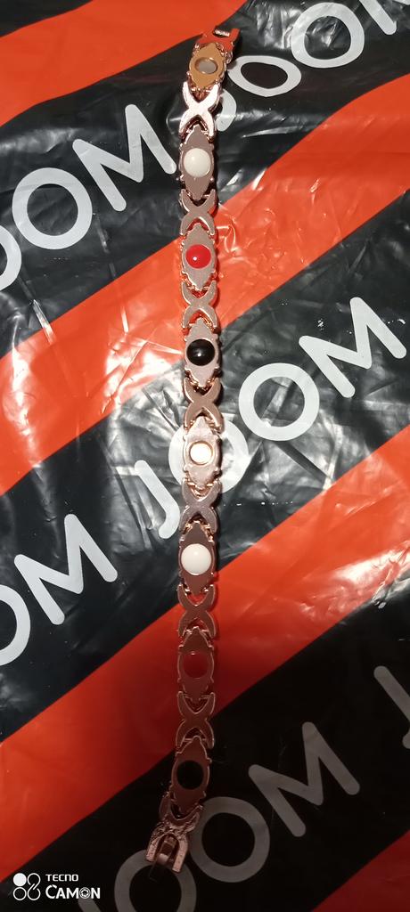 The bracelet is pretty, summery... However, on the second day, both little white stones(?) on the inside popped out, interesting what else will pop up and when? Regarding the medical effect - I haven't felt it yet