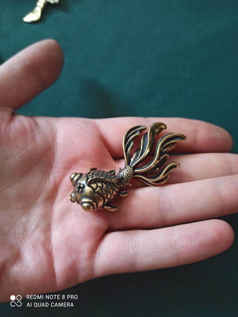 3D Animal Casting Goldfish Statue Metal Retro Statuette Home Office Room Desktop Decoration