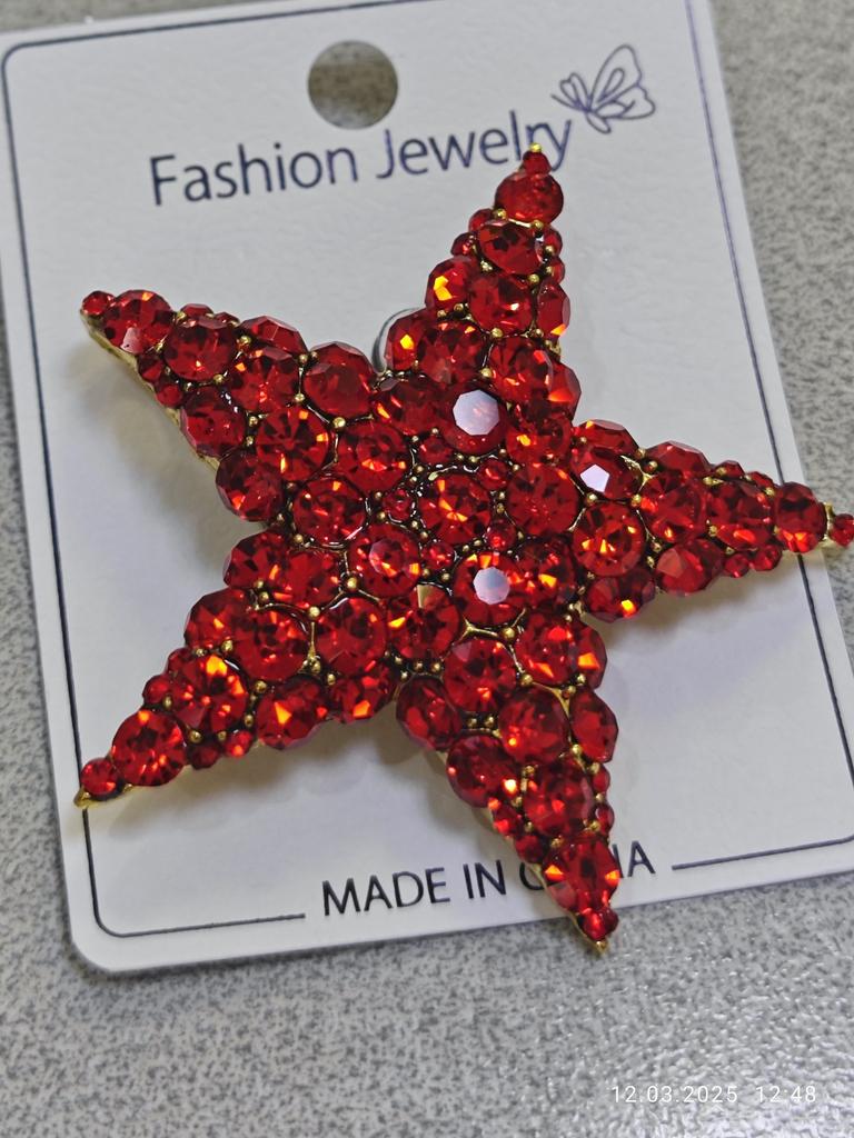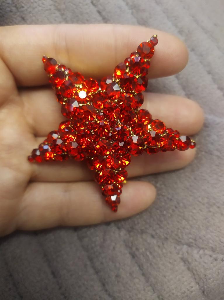 Blucome Christmas Brooch Full Red Five-pointed Star Corsage for Women Kids Sweater Hijab Pins Casual New Year Gifts
