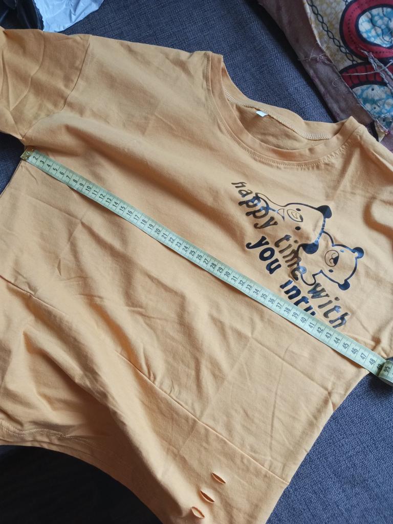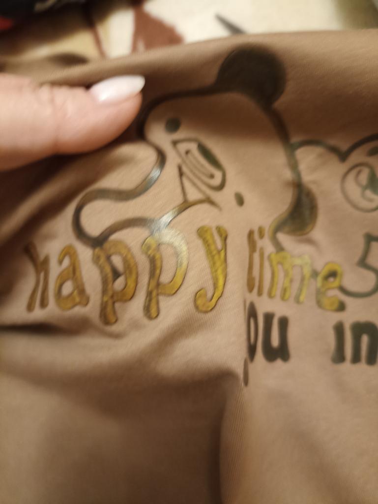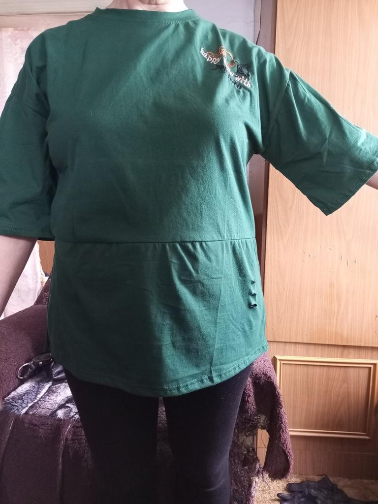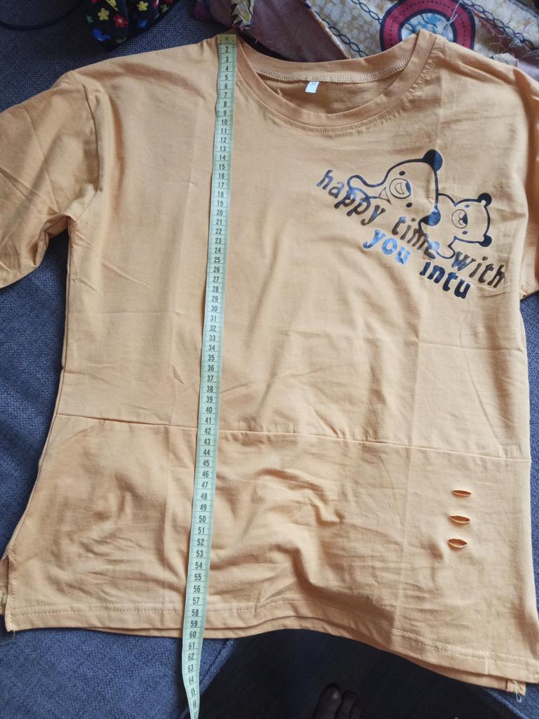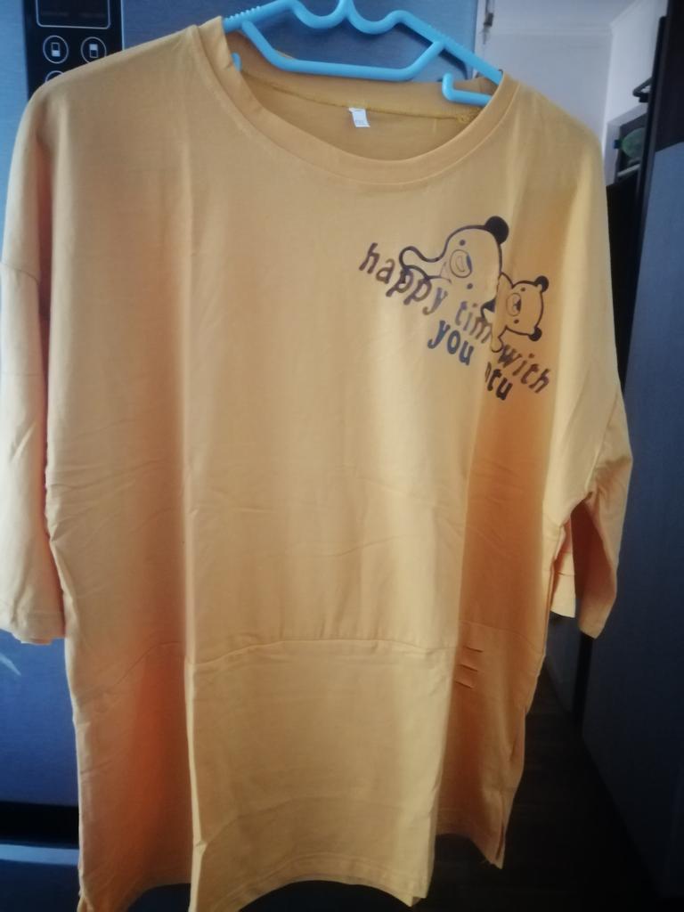 I don't understand good reviews. The color in reality turned out to be terrible. What is called the color of children's surprise. The sleeves are shorter than in the photo, the print is blurred and the general impression is that you don't want to wear it