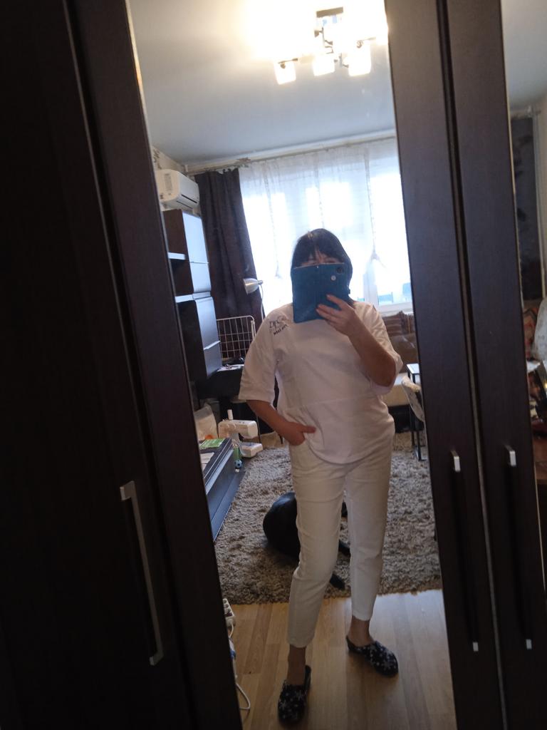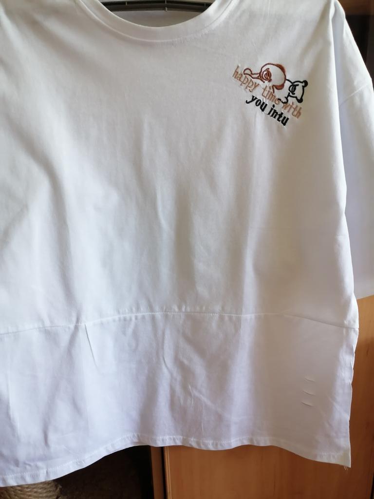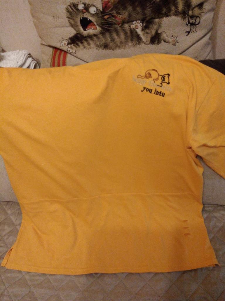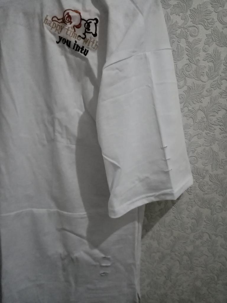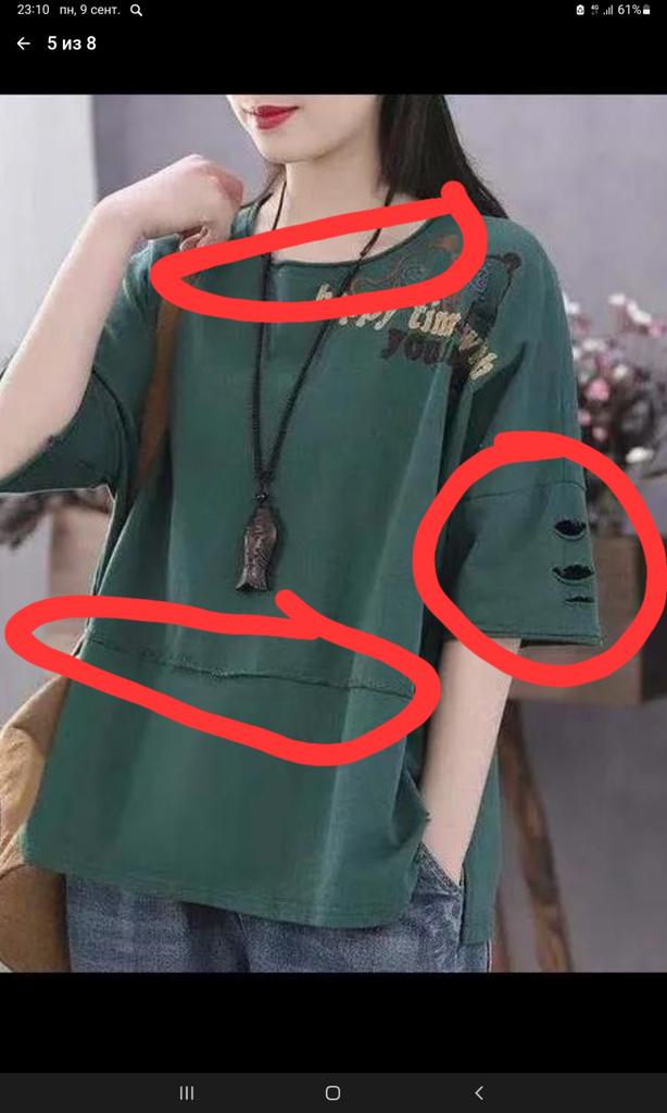 I don't understand good reviews. The color in reality turned out to be terrible. What is called the color of children's surprise. The sleeves are shorter than in the photo, the print is blurred and the general impression is that you don't want to wear it