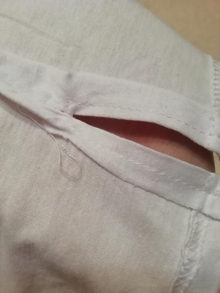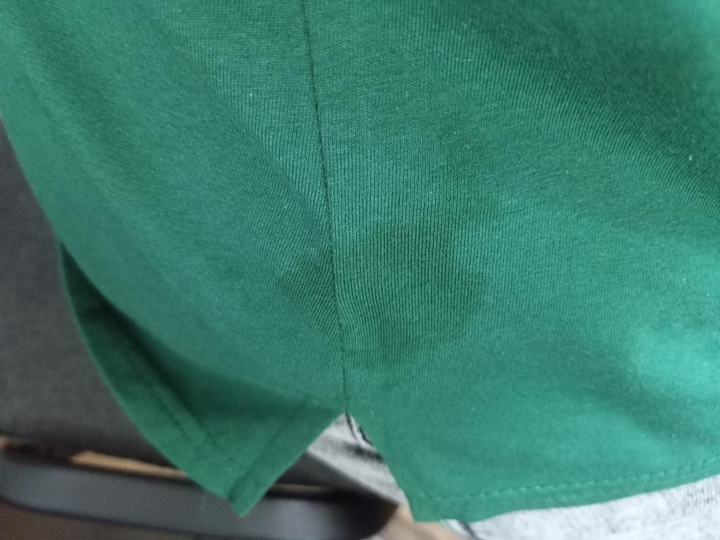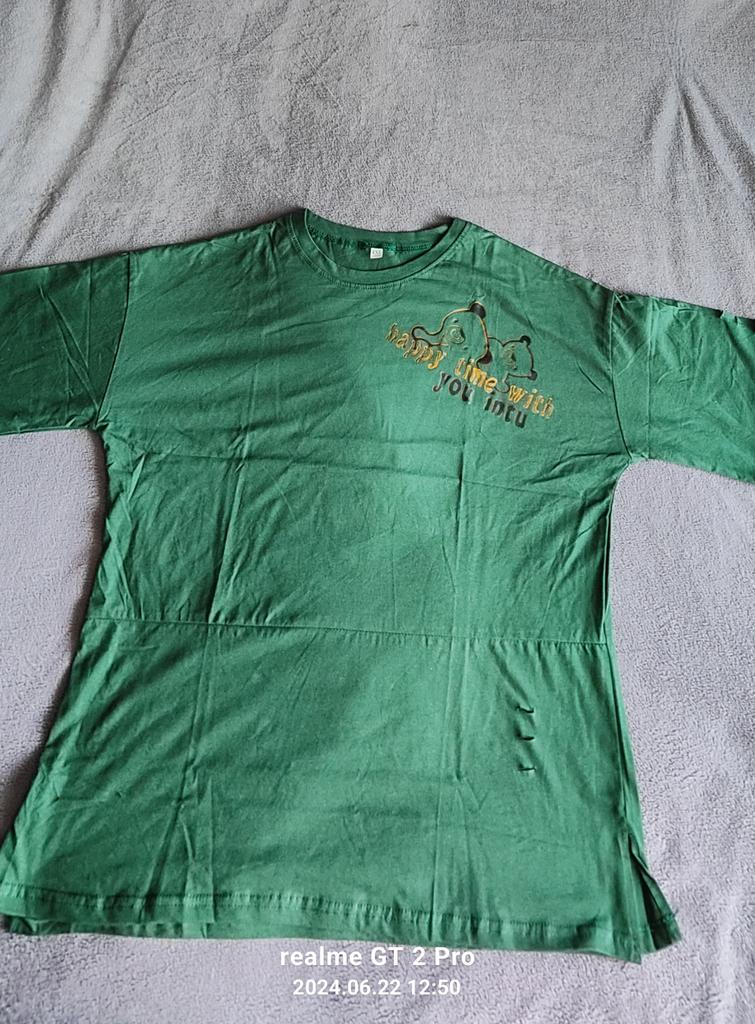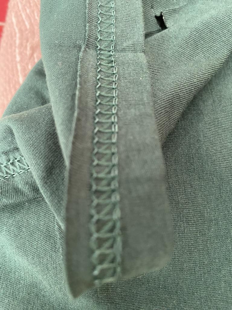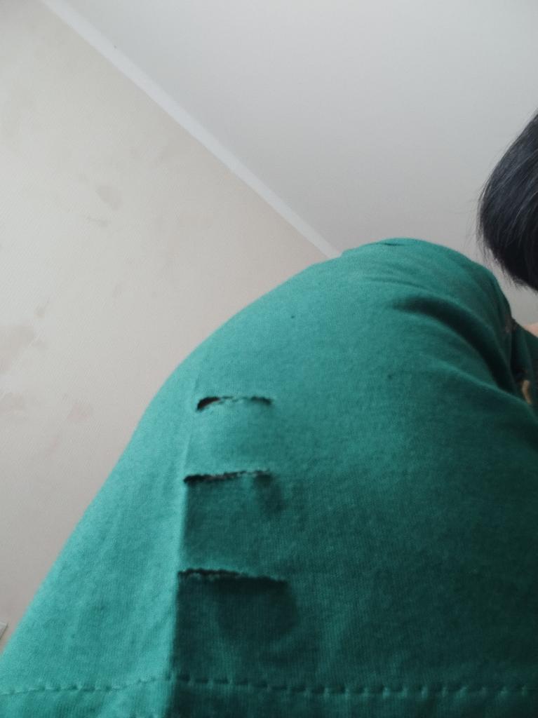 On the sleeves on the side there is no drawing but three ordinary cuts made with scissors. The drawing is almost not visible - on the dark green background of the T-shirt there is a black and yellow sticker-inscription. The only plus is that the cotton is good