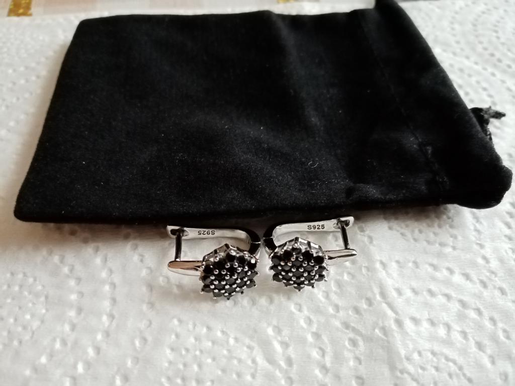Perfect earrings,very elegant,love the combo of black crystals and silver finish.The earrings have 925 stamps,came in black pouch in 3 weeks to Ireland.Happy Shopping!