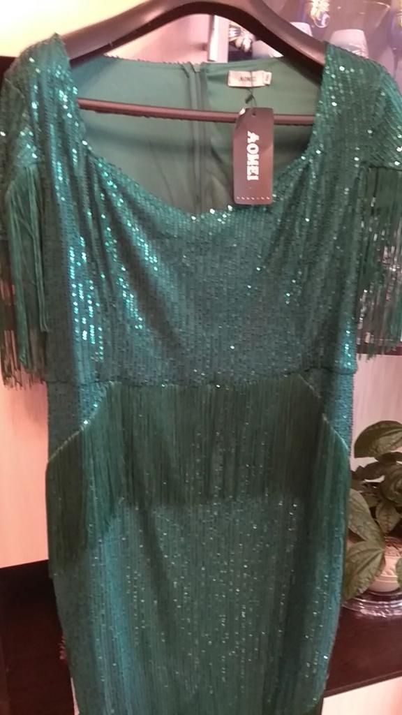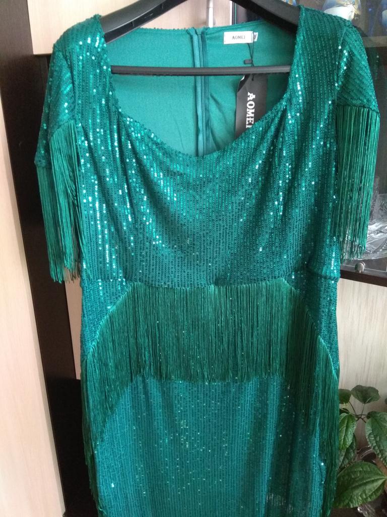Green Tassel Dresses Sexy Bodycon Irregular Length Sequins Retro Evening Cocktail Party Outfits Luxury Glitter African Gowns