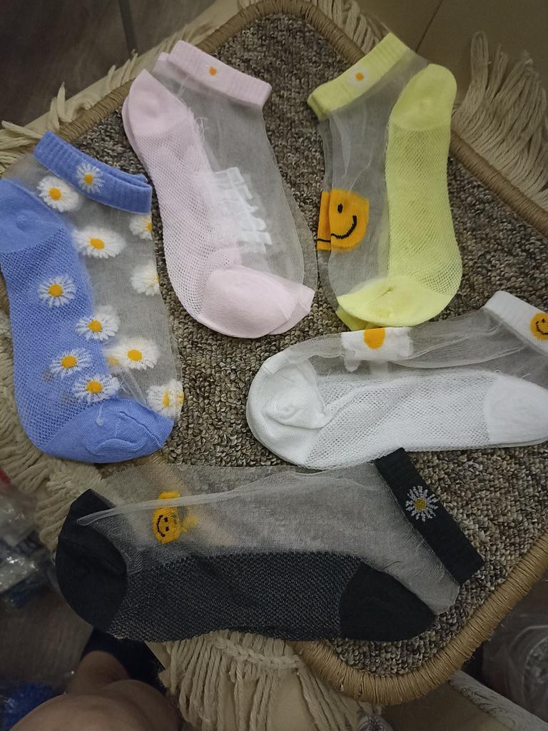 Daisy 5 Pairs of Socks Women's Socks Summer Shallow Mouth Low-top Thin Glass Stockings Summer Transparent Crystal Socks Ins Tide