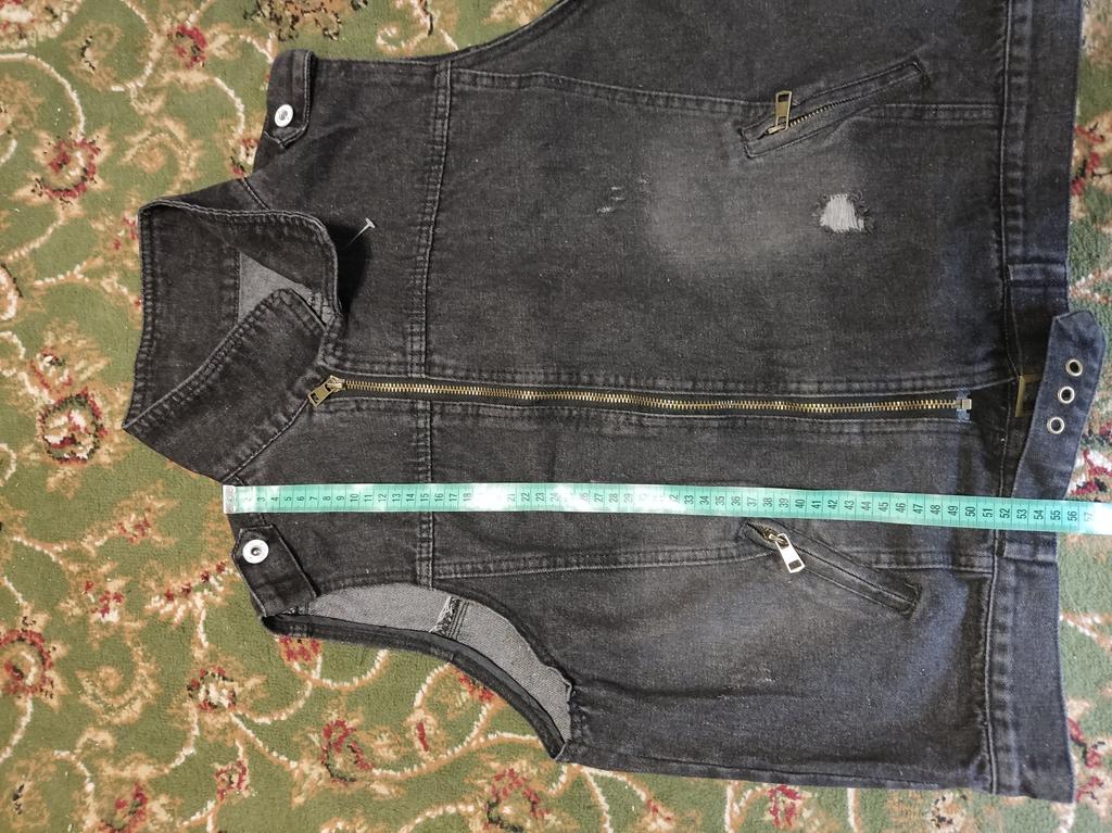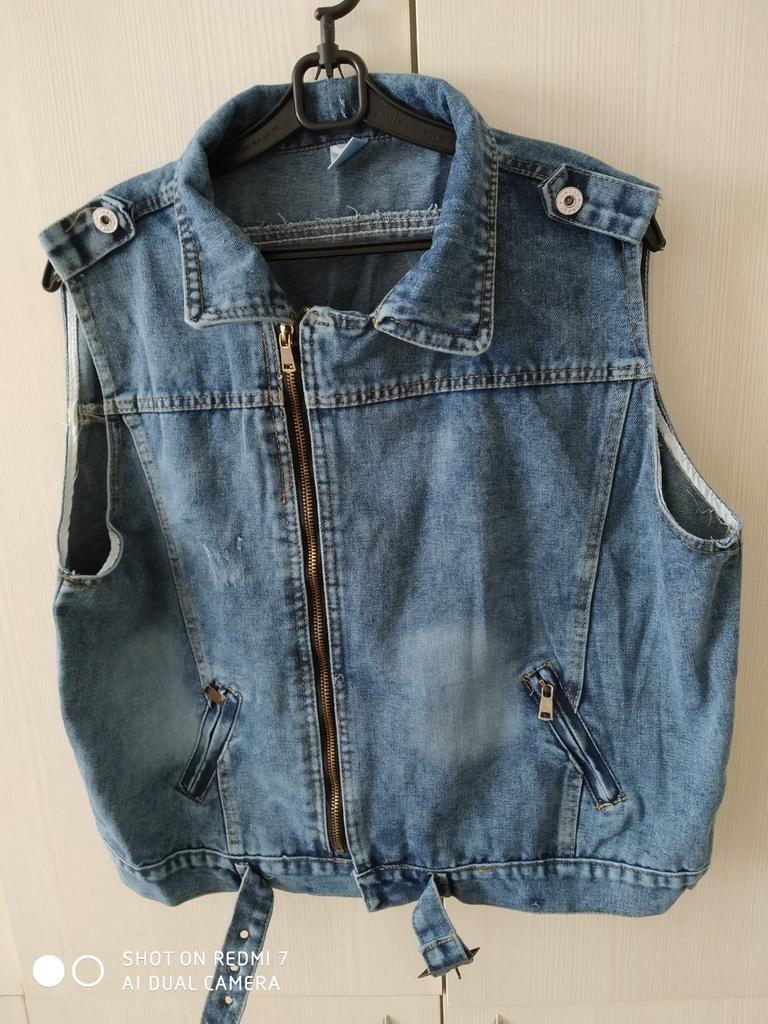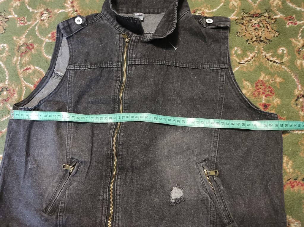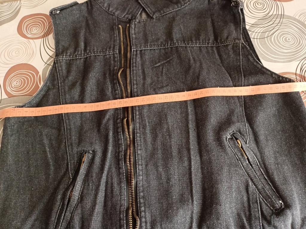 Denim vest, neat tailoring, good quality. Size XXL fits 48 Ros.. Thank you!!