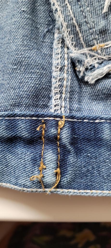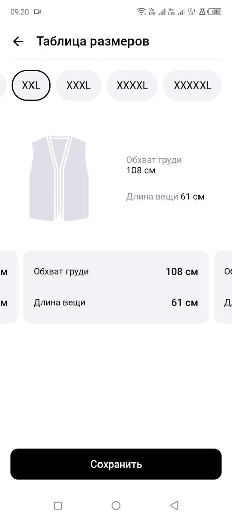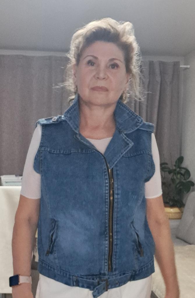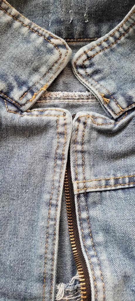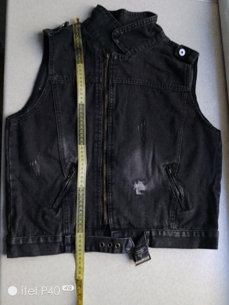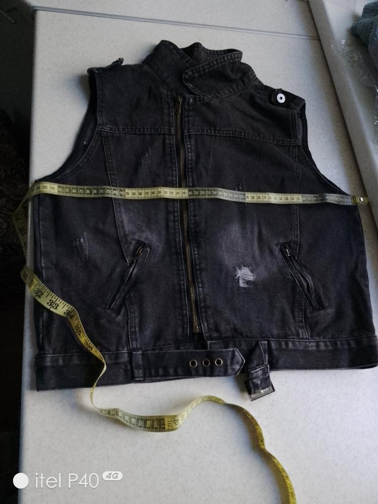 Denim vest, neat tailoring, good quality. Size XXL fits 48 Ros.. Thank you!!
