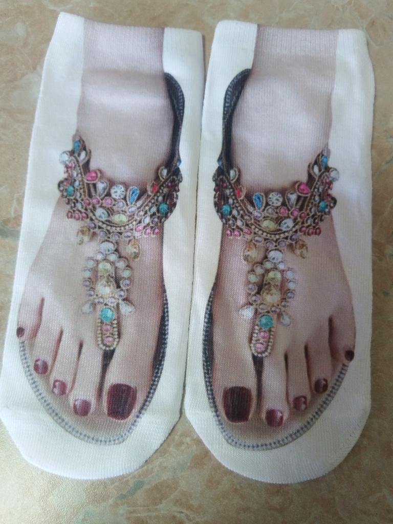 Cute Footprint 3D Socks Female Kawaii Low Ankle Female Girls Cotton Socks