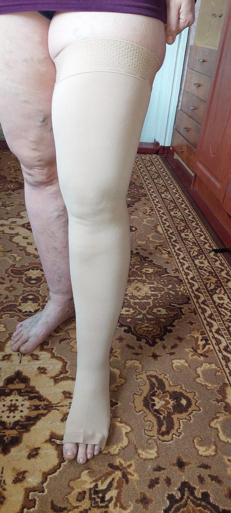 In general, the quality is satisfactory, they do not roll down and fit well, but the minus is for the compression, it is weak, I expected more, unfortunately the stockings are rather weak for my varicose veins.