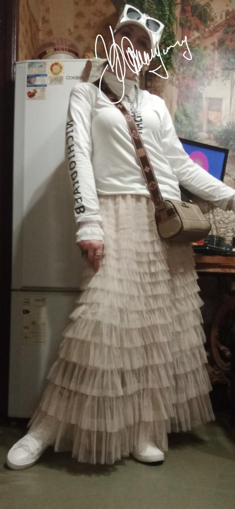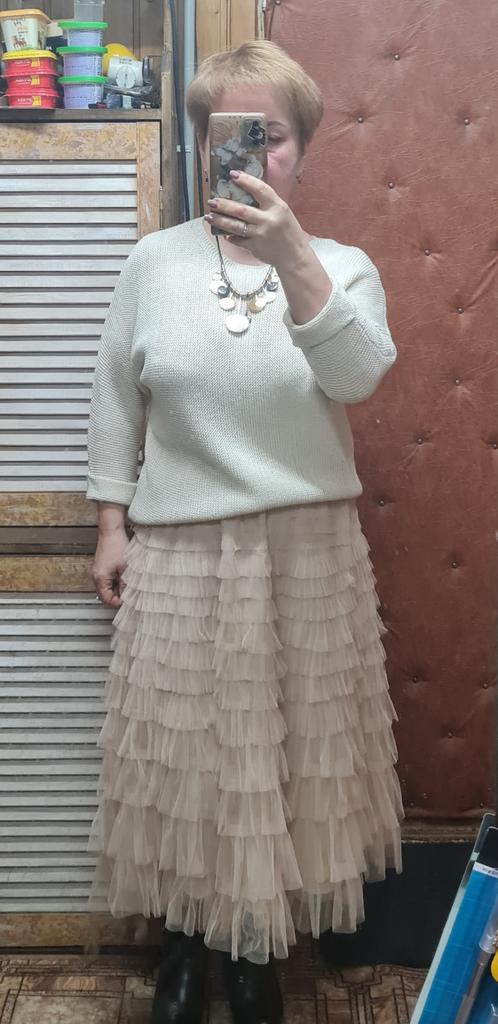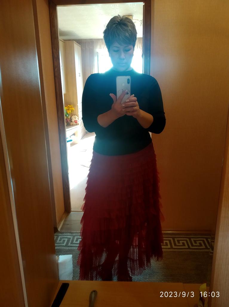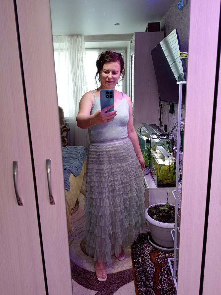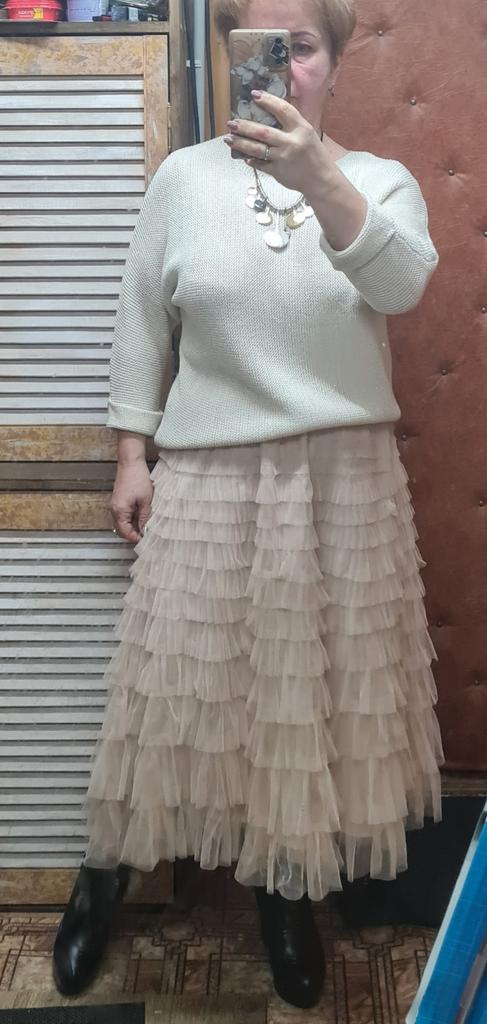 Gorgeous airy skirt! The skirt fits size 50 (OT-82, OB-102). Good product. I highly recommend purchasing.