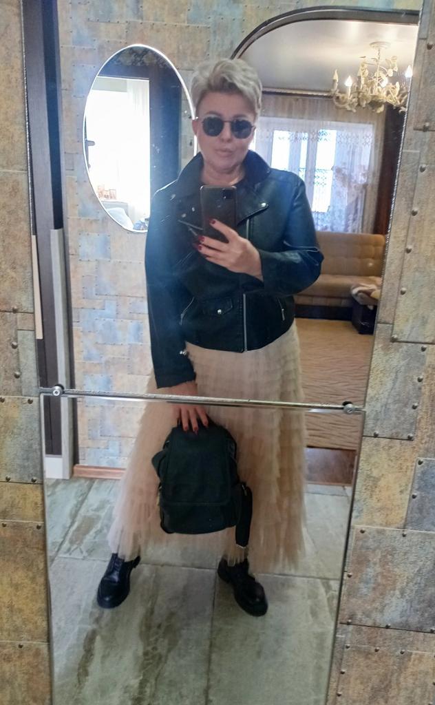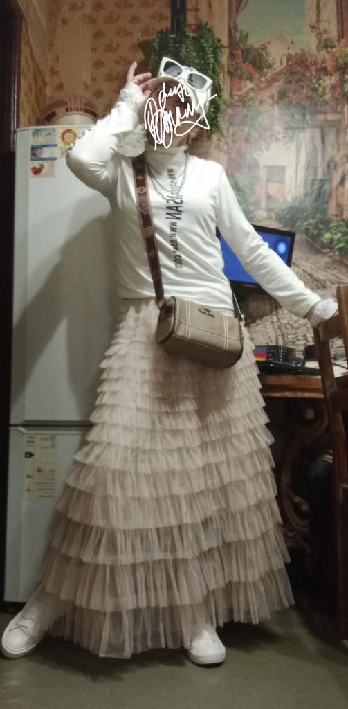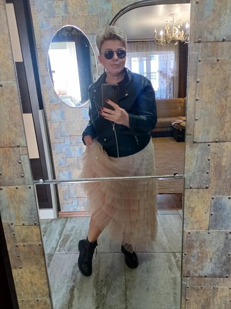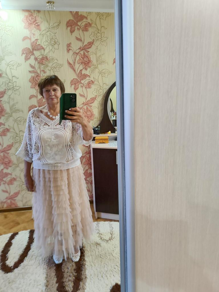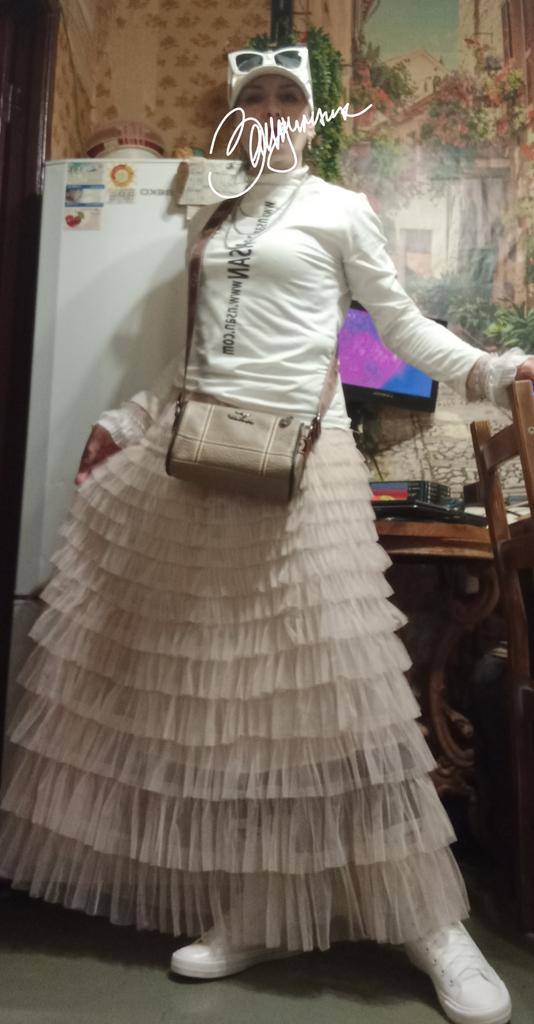 Gorgeous airy skirt! The skirt fits size 50 (OT-82, OB-102). Good product. I highly recommend purchasing.