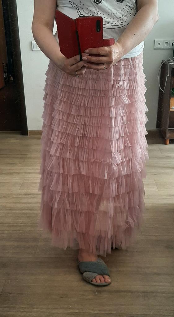Chic skirt for the summer! I really wanted it in pink, I got it. The color is not bright, very beautiful. The length is good, if desired, it can be shortened without a atelier. With my 85cm waist, it doesn’t increase the size, it looks great! Thanks a lot!