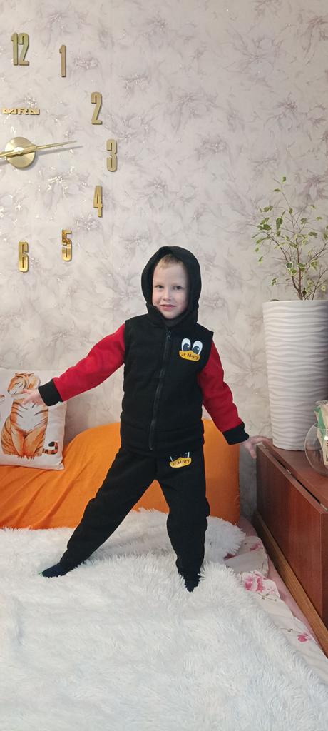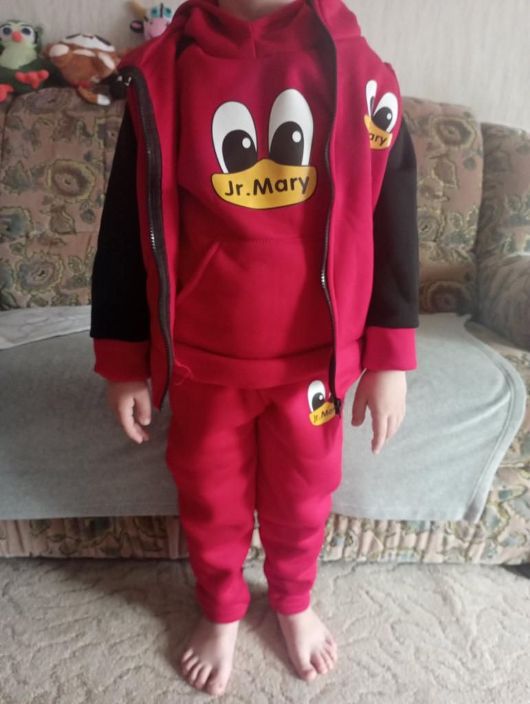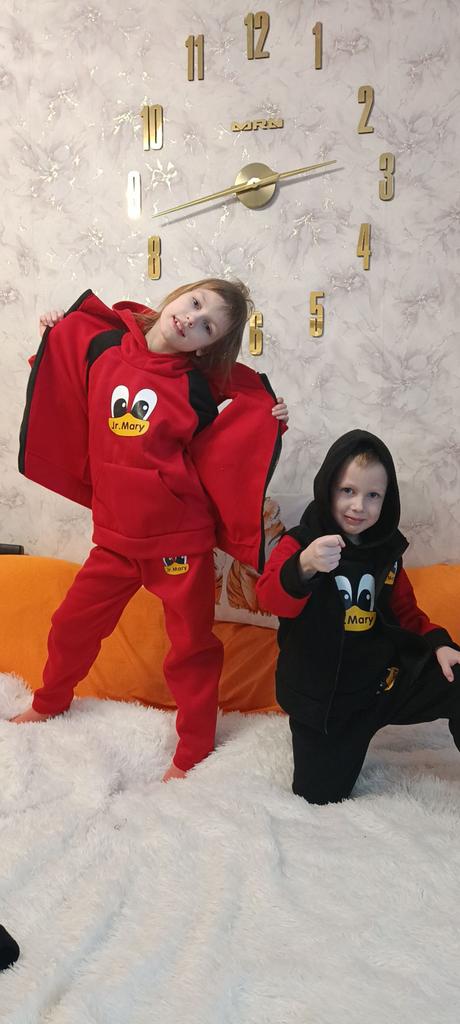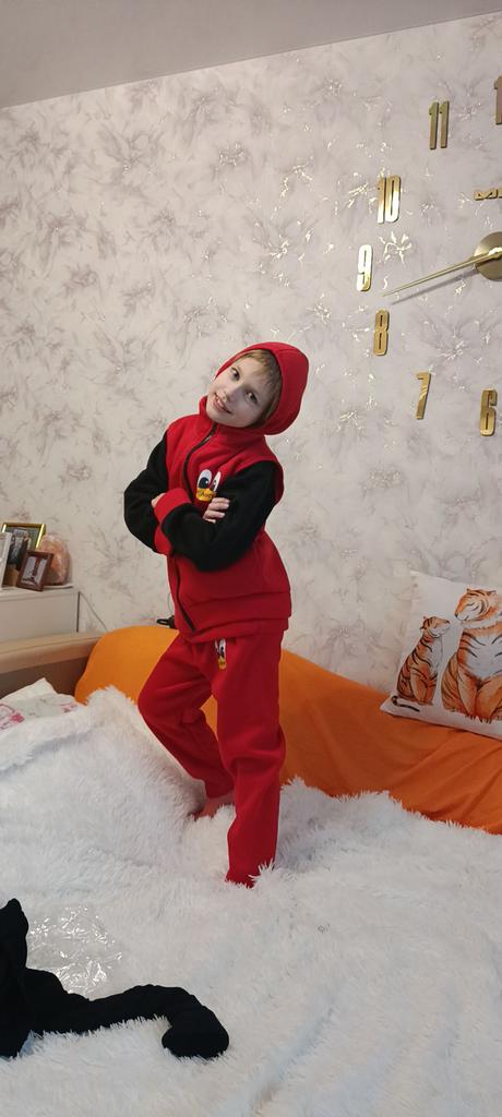 I received the parcel (20.11.-18.12.). I made several orders, they were combined into one - I was very pleased. Ordered 2 suits: a son for a height of 121 cm-140, and a daughter for a height of 123 cm-150. A little too big, but they were taken for growth. The children are very satisfied. The fabric is soft and warm, pleasant to the touch, and most importantly, not thin. The quality is good. Threads stick out a little at the seams, but I don't consider it a drawback. In a word, I RECOMMEND. Thank you very much JOOM. Good luck to you.