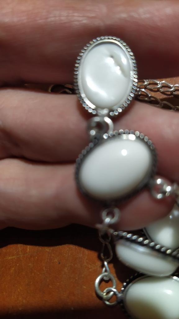 Very pretty white necklace, I bought the white bracelet that went with it but unfortunately the bracelet lost 3 pearls after 2 days. I bought 5 necklaces and 3 bracelets to make jewelry, but it is difficult to have exactly the same color between the necklace and the bracelet. In addition, the order took more than 45 days to arrive!