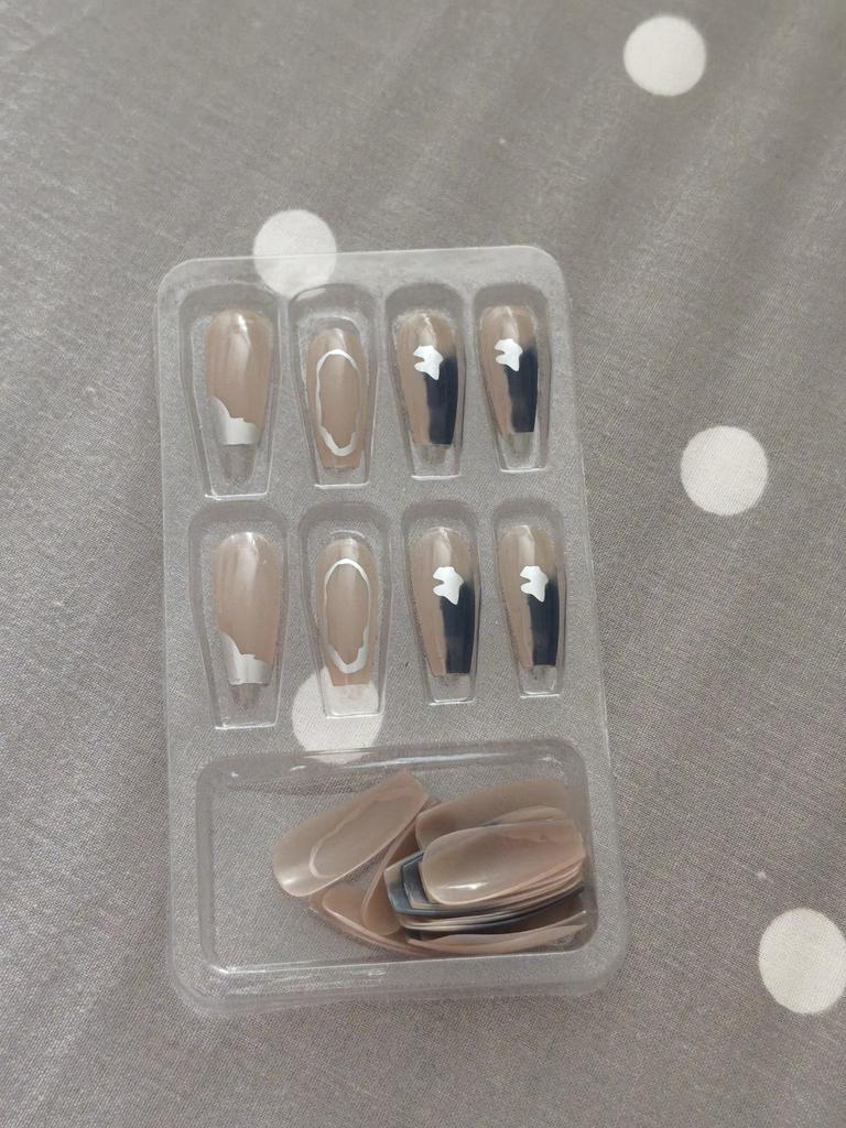 The nails are perfectly beautiful, but the liquid glue is in an inconvenient jar.