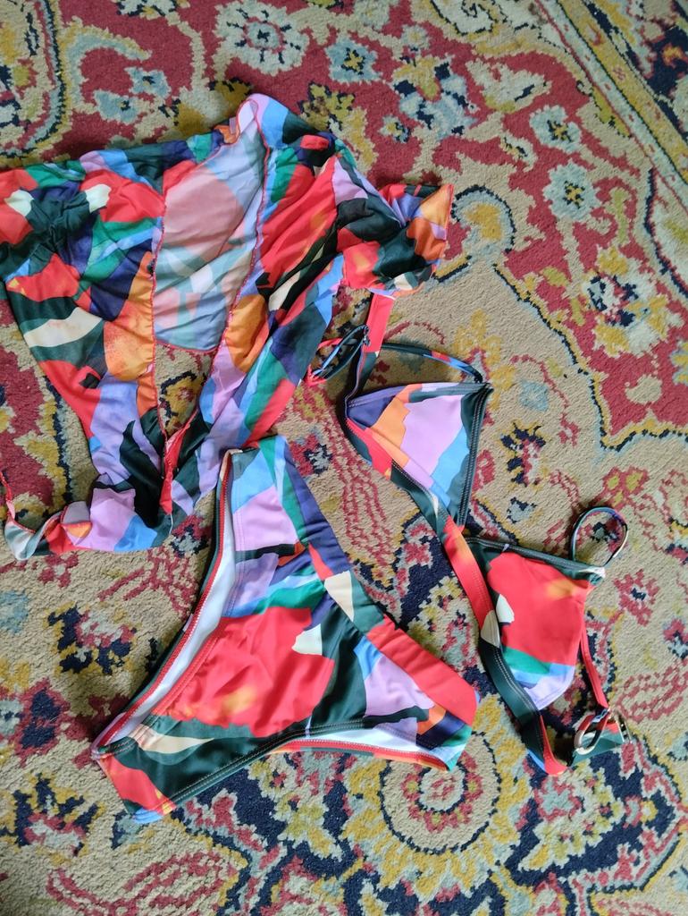 Beautiful swimsuit, true to size. Color as in the photo. Lacks underwire in the bra to support the bust, but doesn't slip down. Arrived quickly, without any problems.