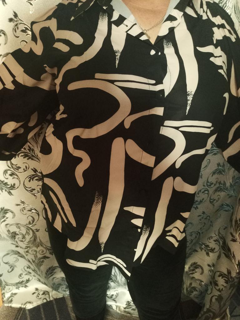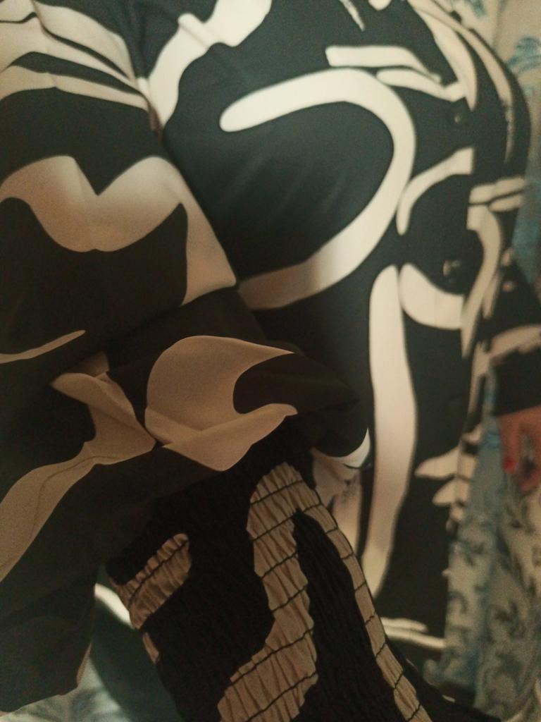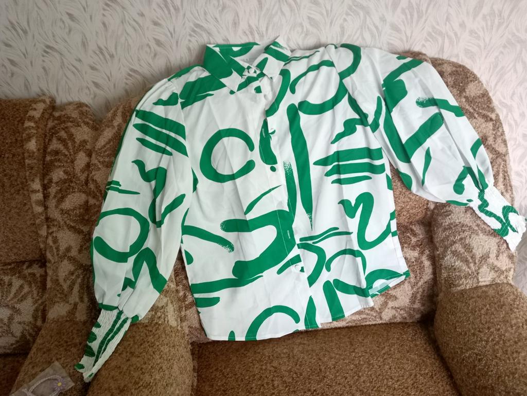 DX2018-8127 # - New Top Casual Print Bubble Shoulder Lantern Long Sleeve Shirt Women