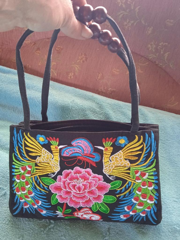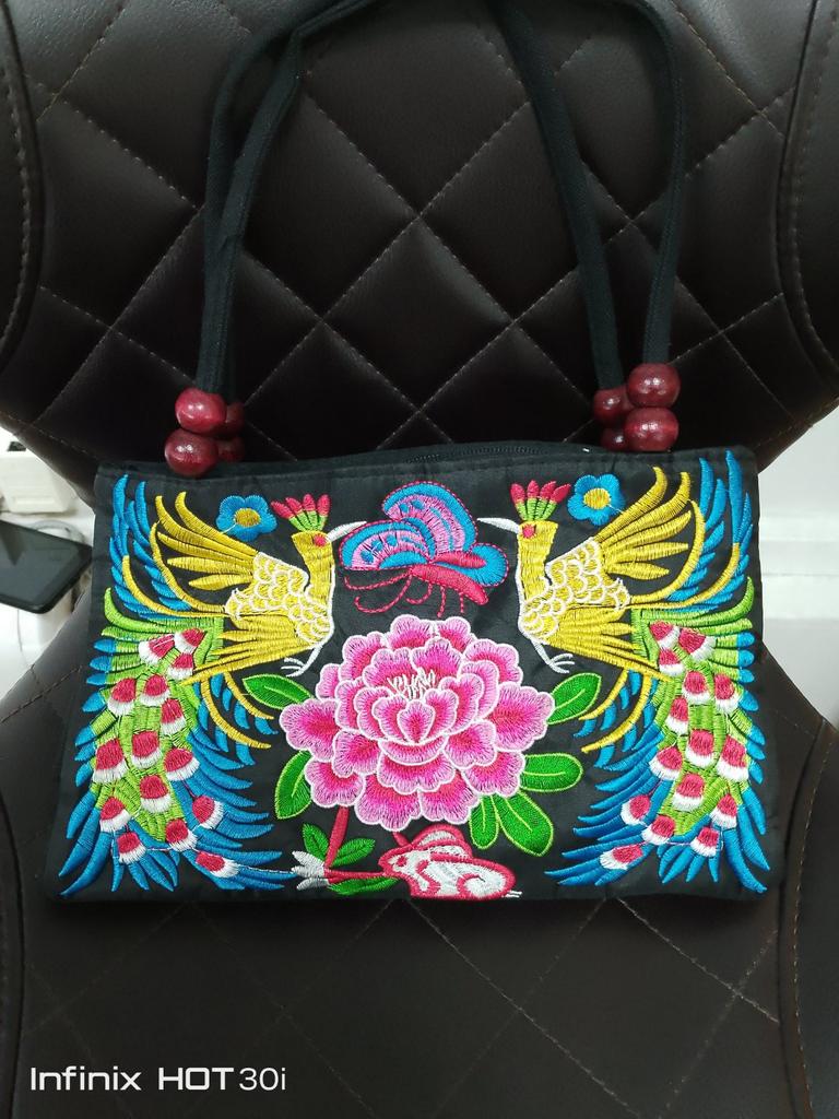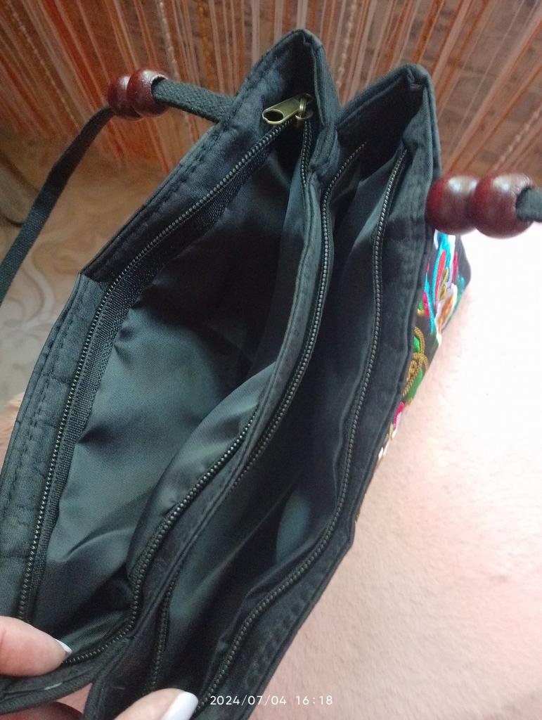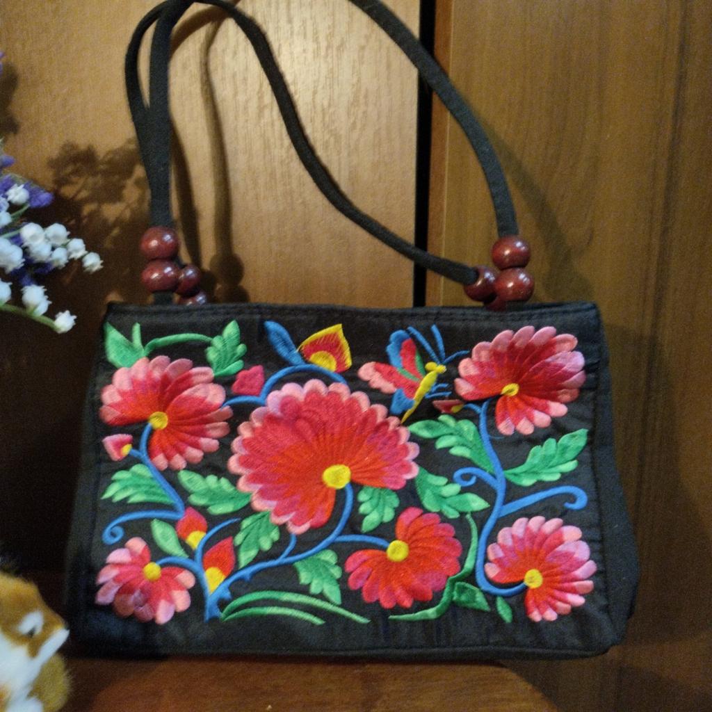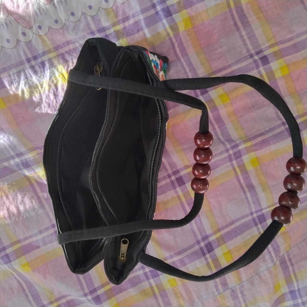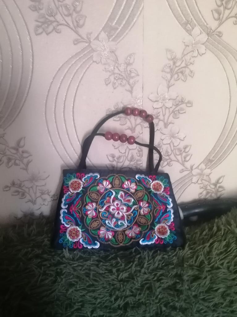 Small handbag. beautiful embroidery, two compartments close in different directions. I like everything