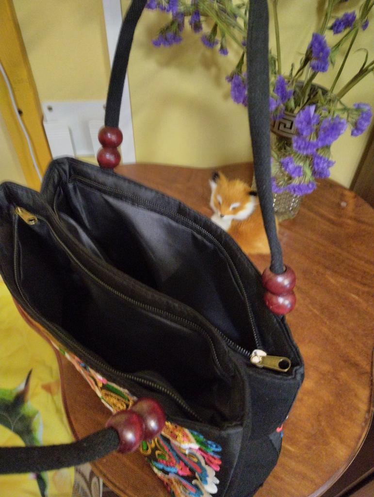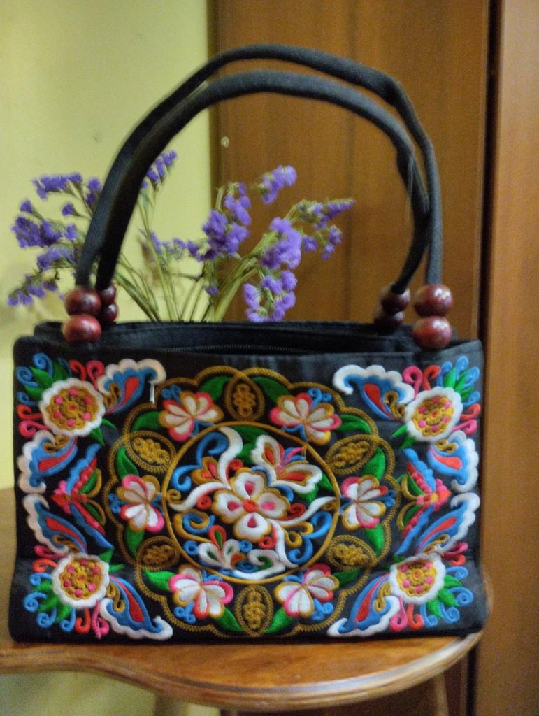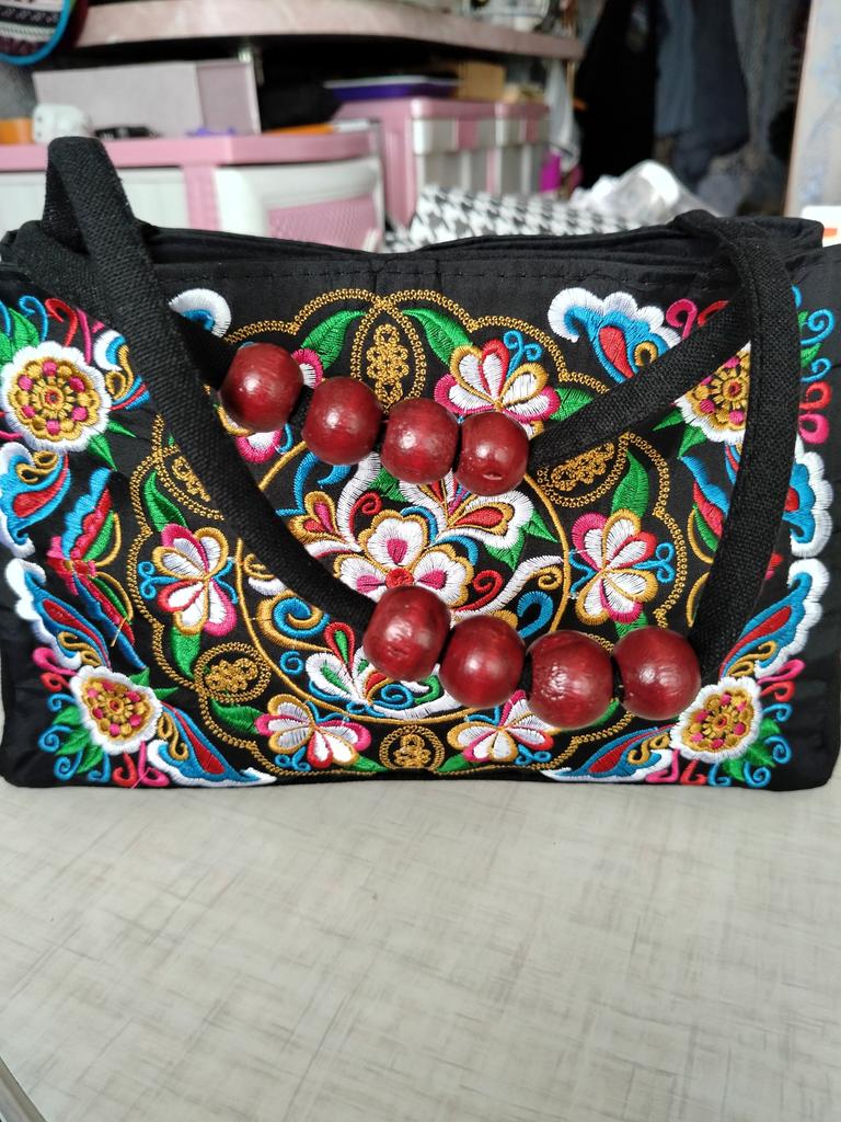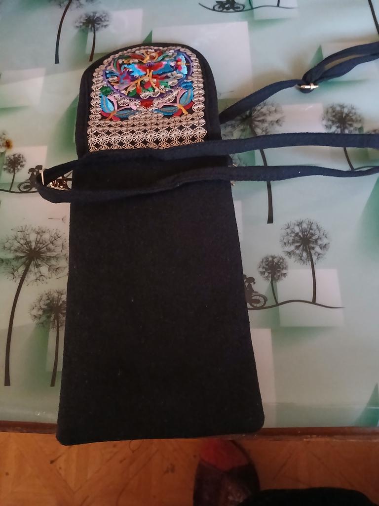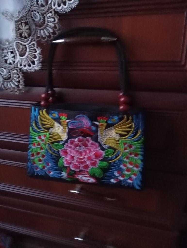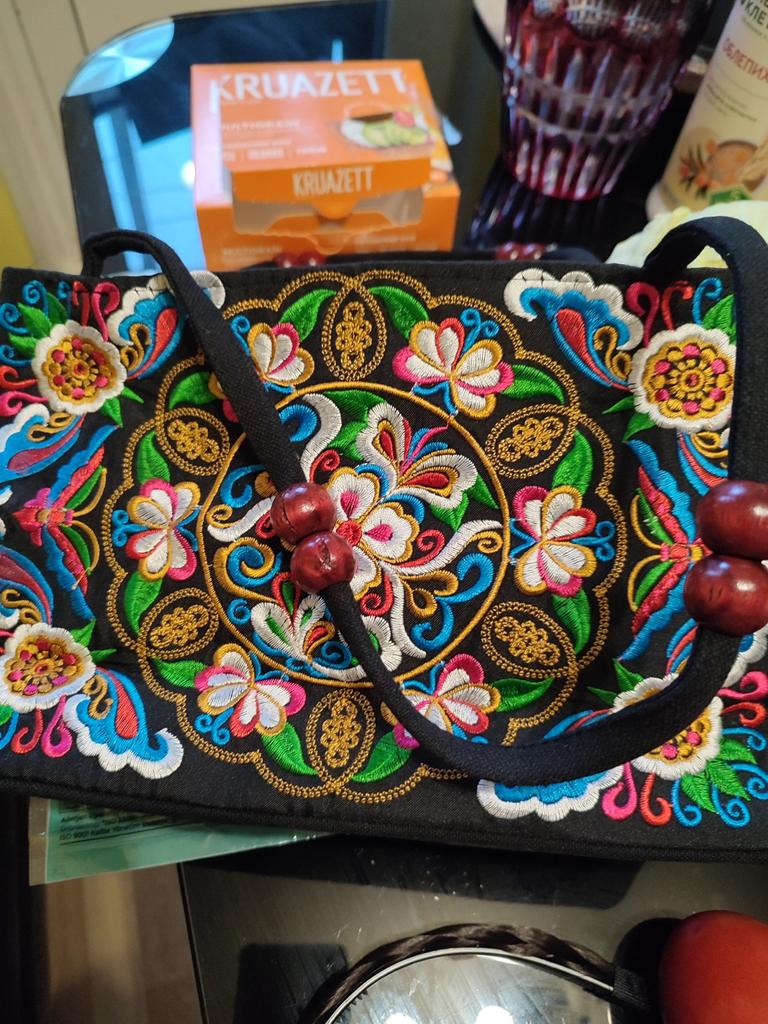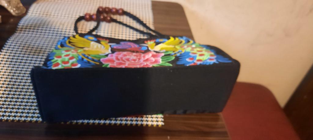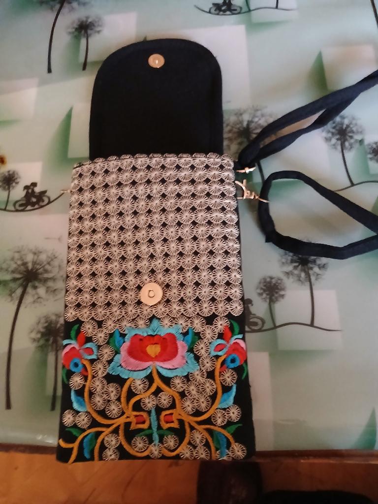 Small handbag. beautiful embroidery, two compartments close in different directions. I like everything