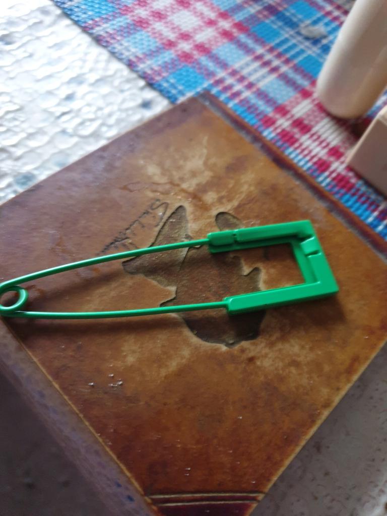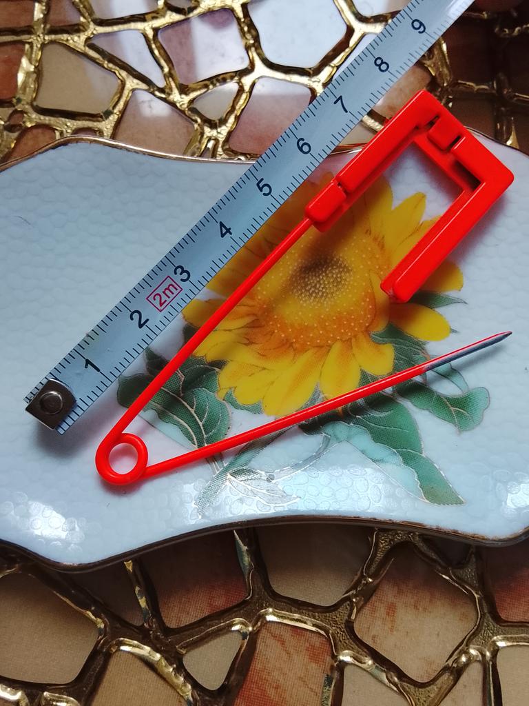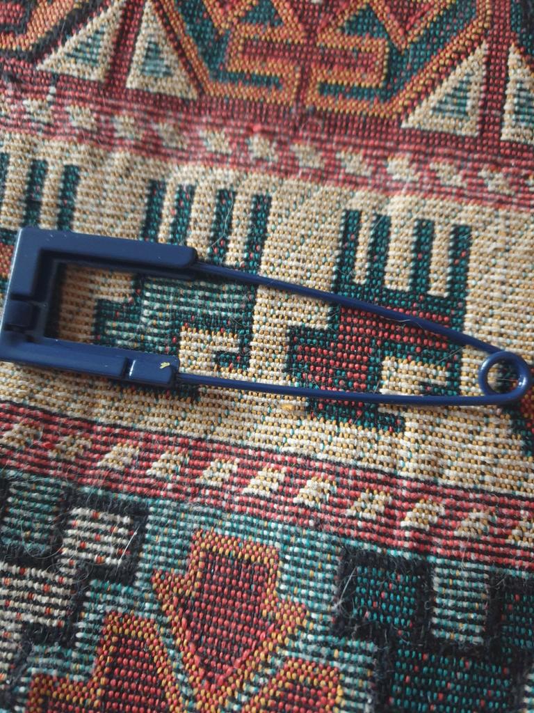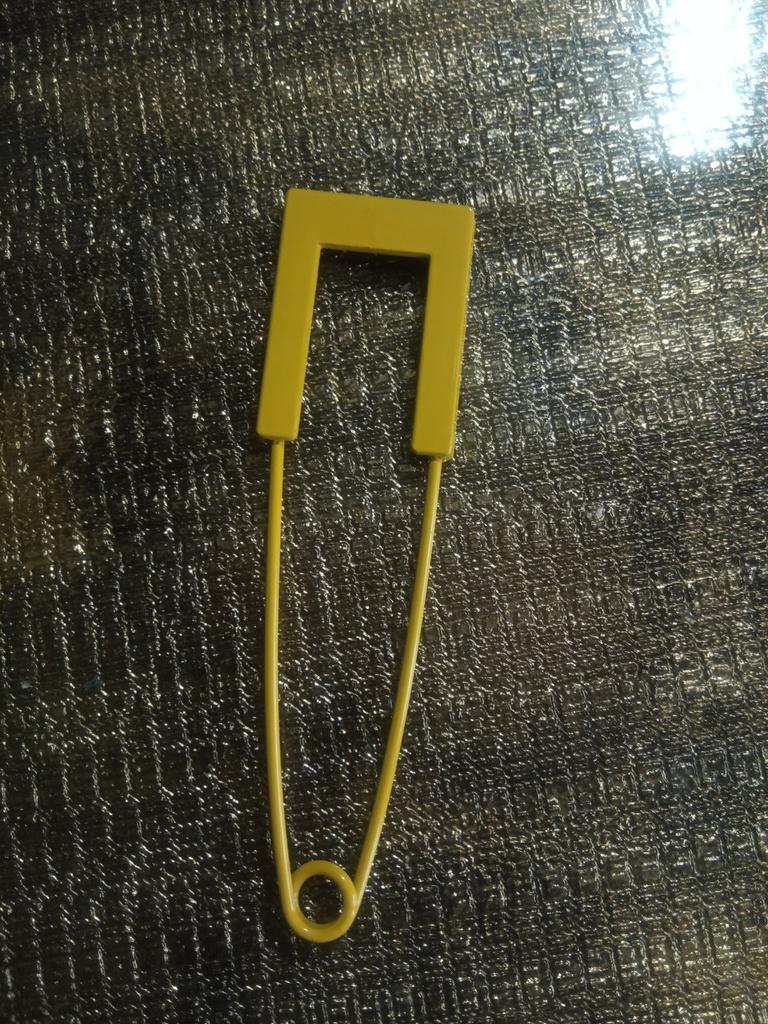 A large pin, but only for knitted items. The point is blunt!