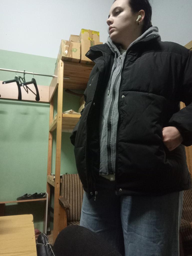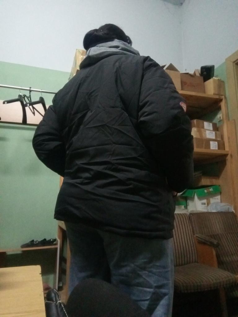 The jacket is very thin, not winter at all, very very thin, fits the size, the color is duller than in the photo, the parcel was delayed