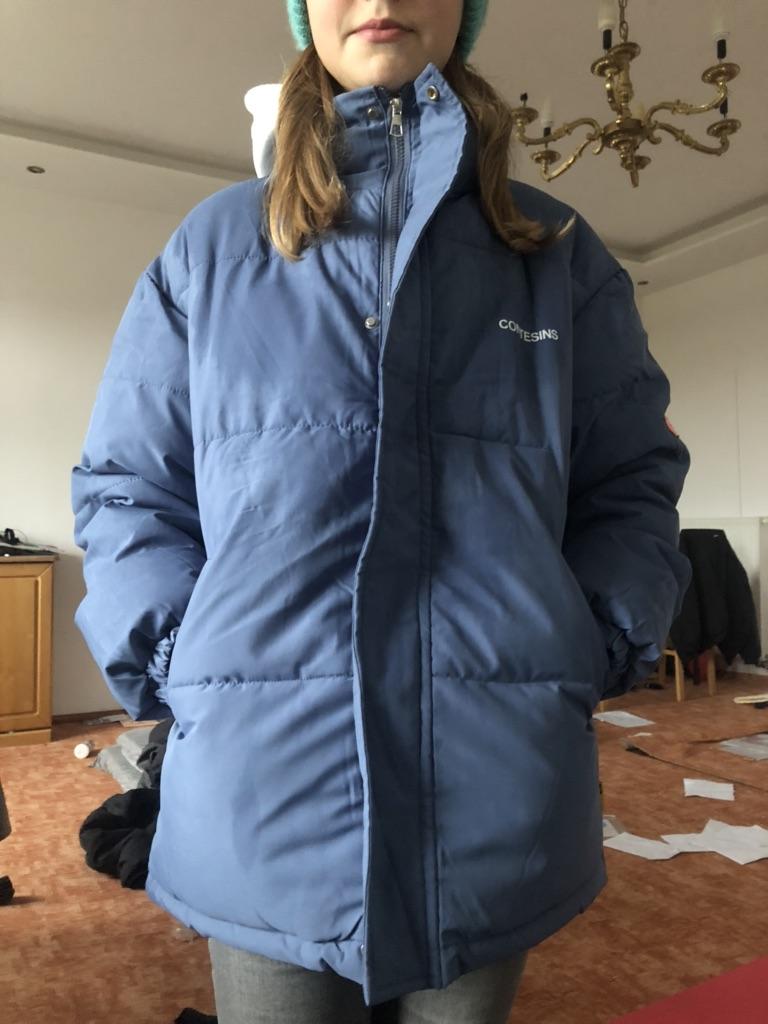 Comfortable, cozy and warm jacket. On my size 52 xxl fits perfectly. I will wear it with pleasure. The white color near the face makes you look younger! Thanks to the manufacturer and Juu.