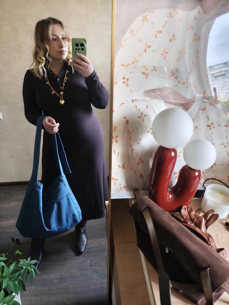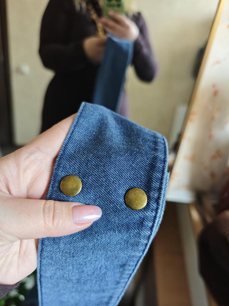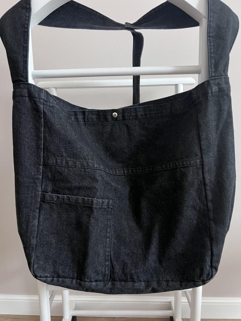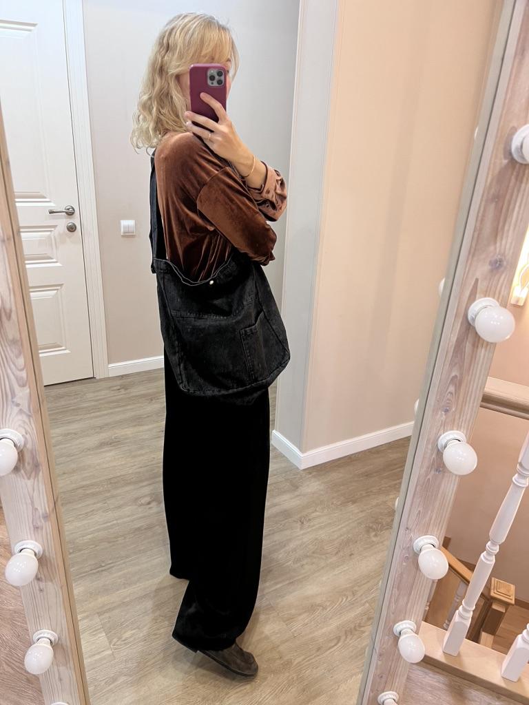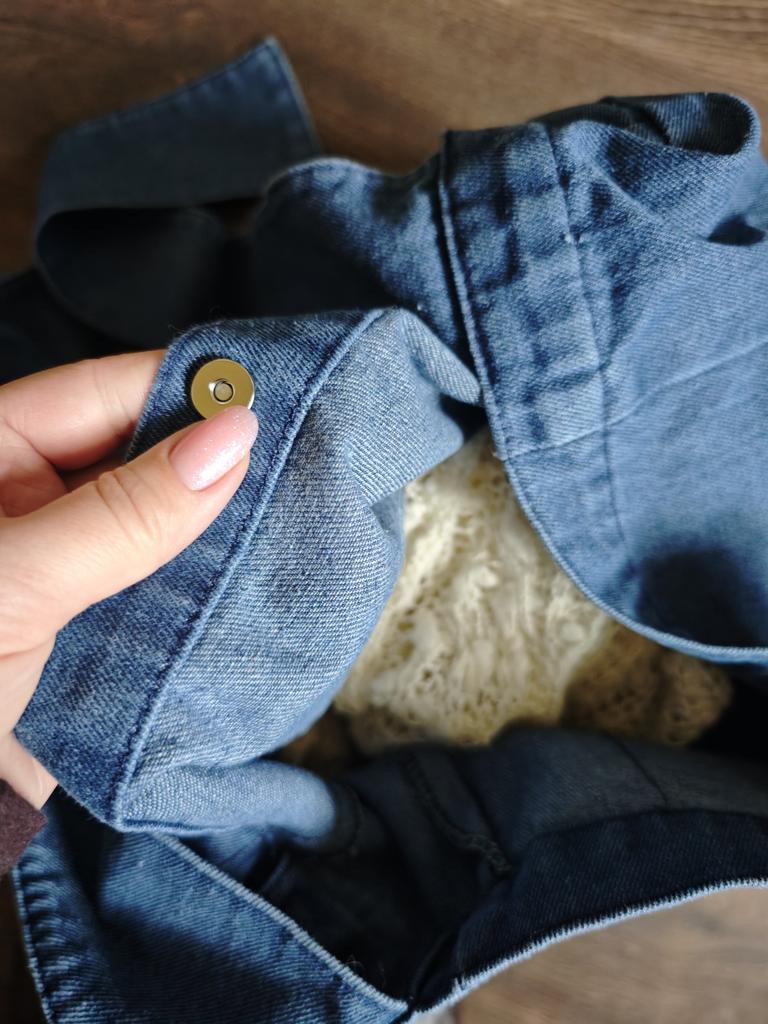 Denim shopper bag. There are two colors in the link - like mine and blue. The bag is made of denim fabric. There is a wide shoulder strap with snaps. Inside the product is unlined, one compartment. There is one pocket on the outside. Button closure. Denim of good density, durable. Shoulder strap, comfortable. A lot of things can fit. That's exactly the kind of bag I needed. So, bagπ€
