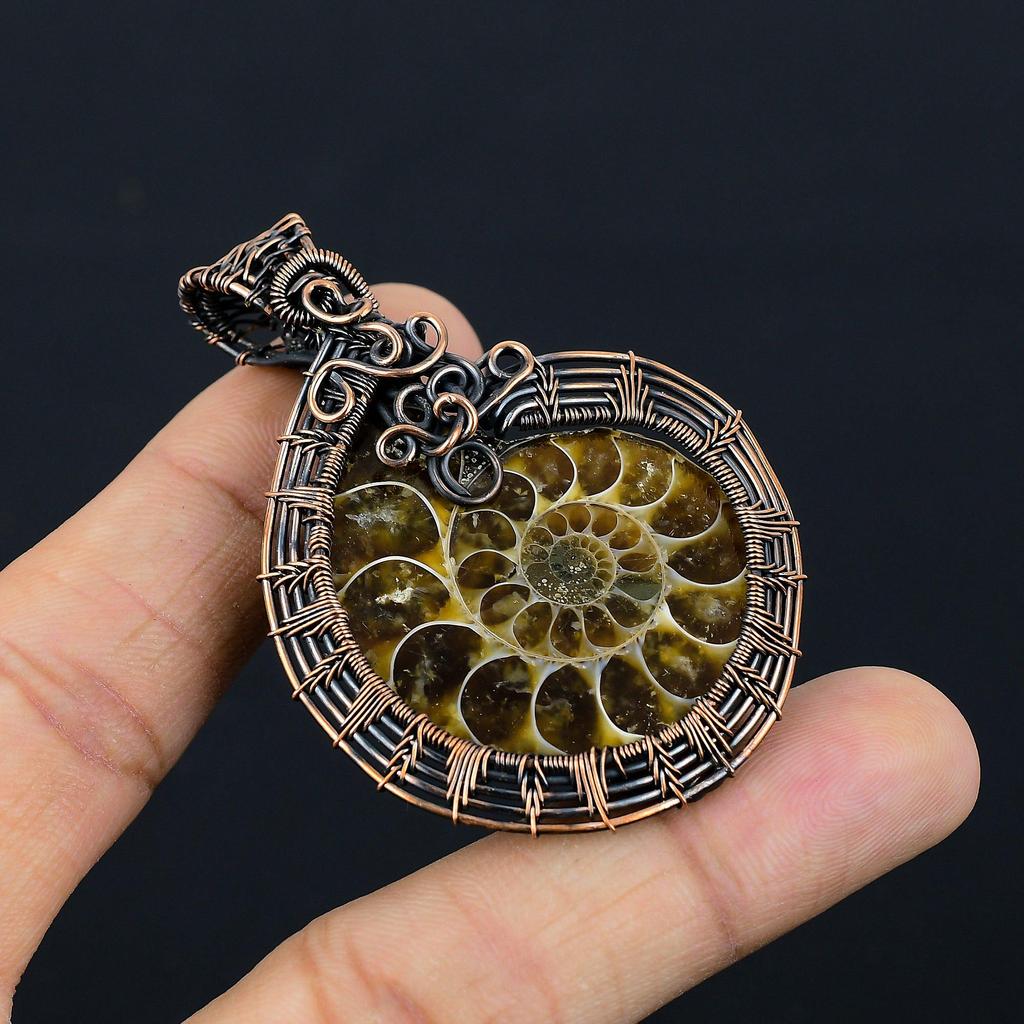 Ammonite Fossil Gemstone Pure Copper Wire Wrapped Designer Handmade Pendant Jewelry For Gift