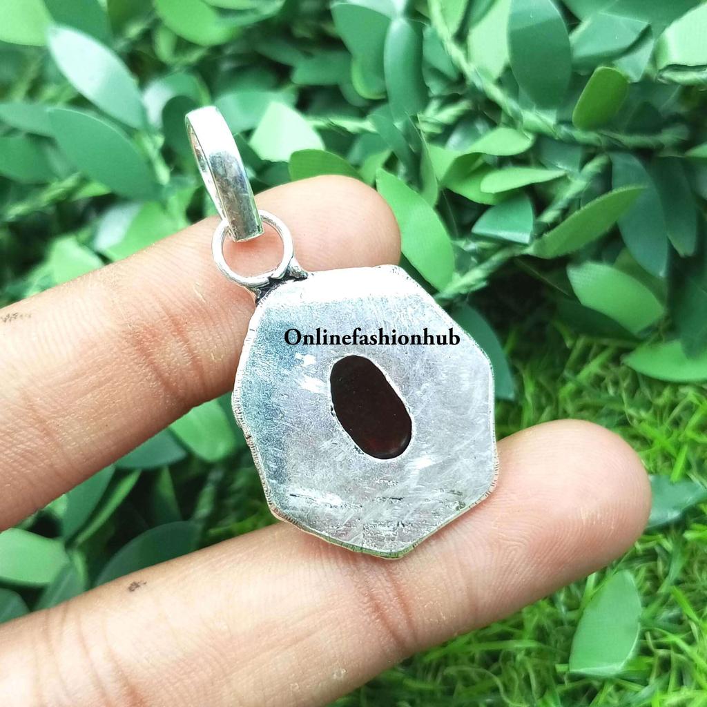 Garnet Gemstone 925 Sterling Silver Plated Men's Pendant FPD-P86