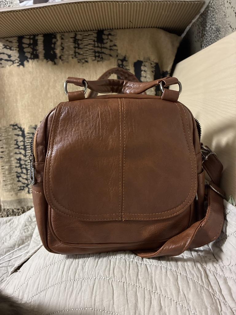 Good handbag. Soft, small in size, convenient with two compartments and pockets. Can be carried in the hand, or on the shoulder, or as a backpack. The color is brown, I chose it for autumn.