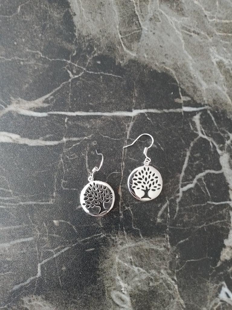 925 Sterling Silver Circle Tree Drop Earring Charm Jewelry