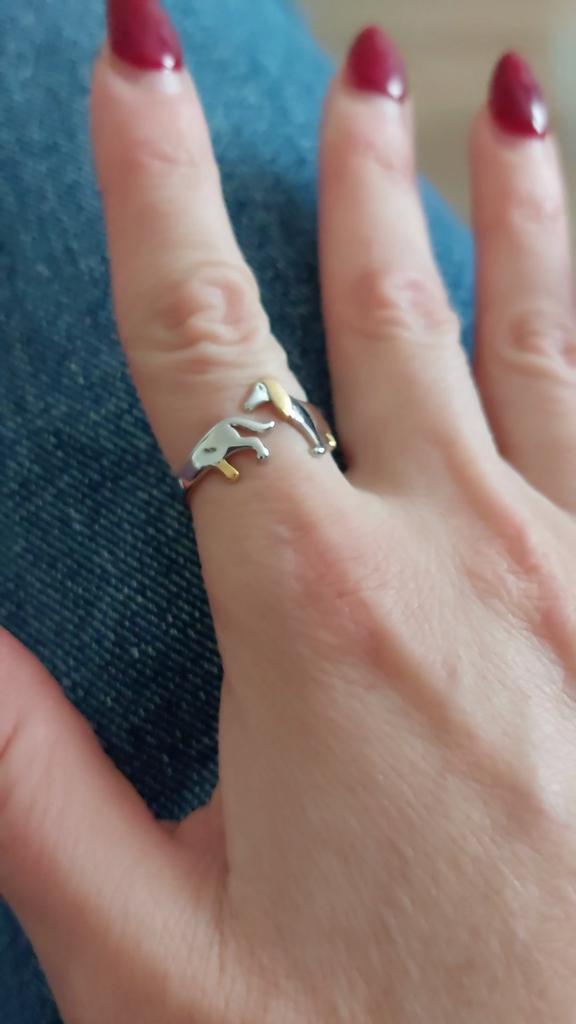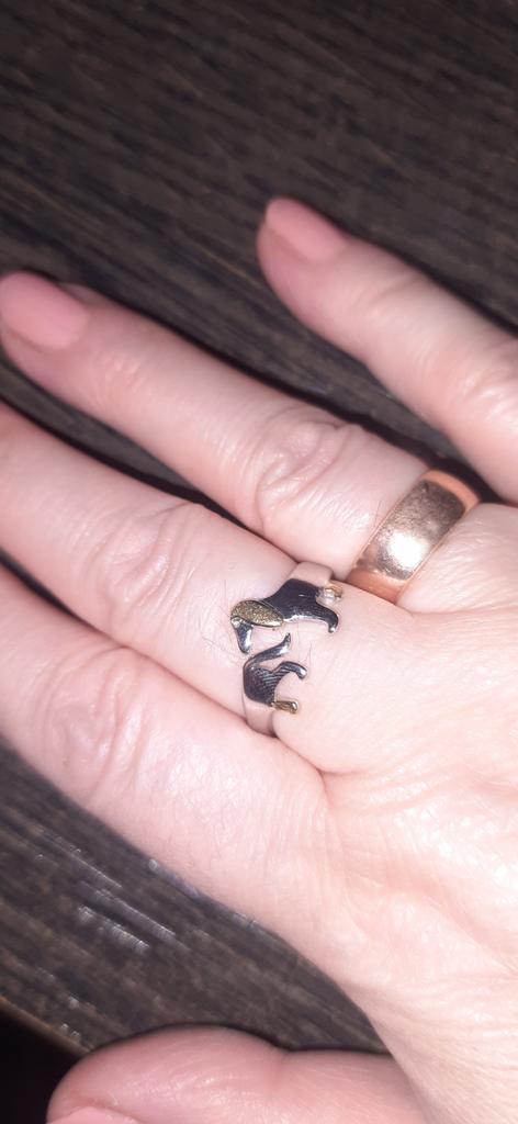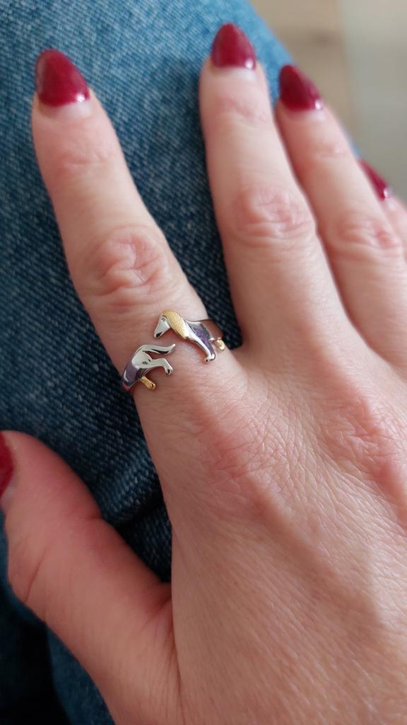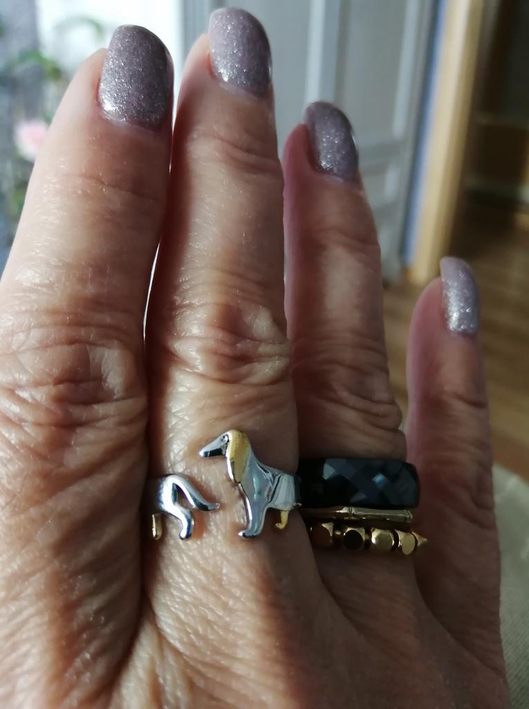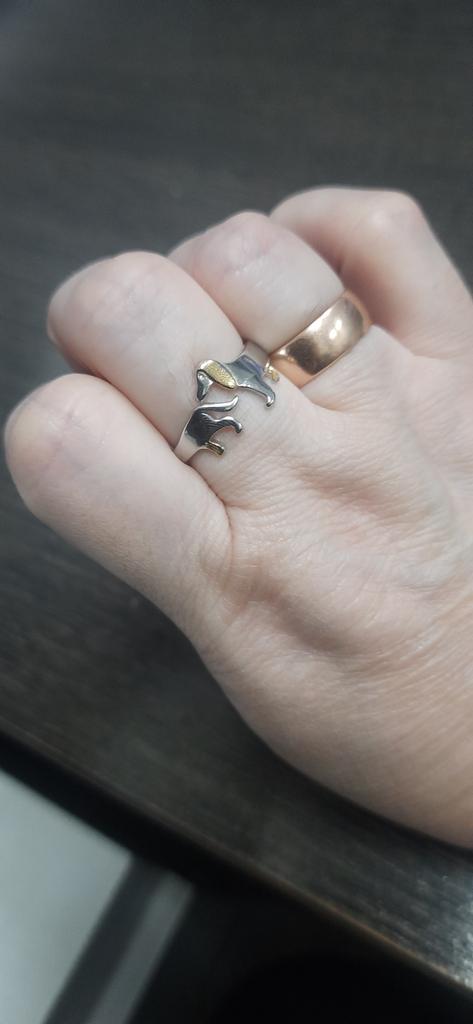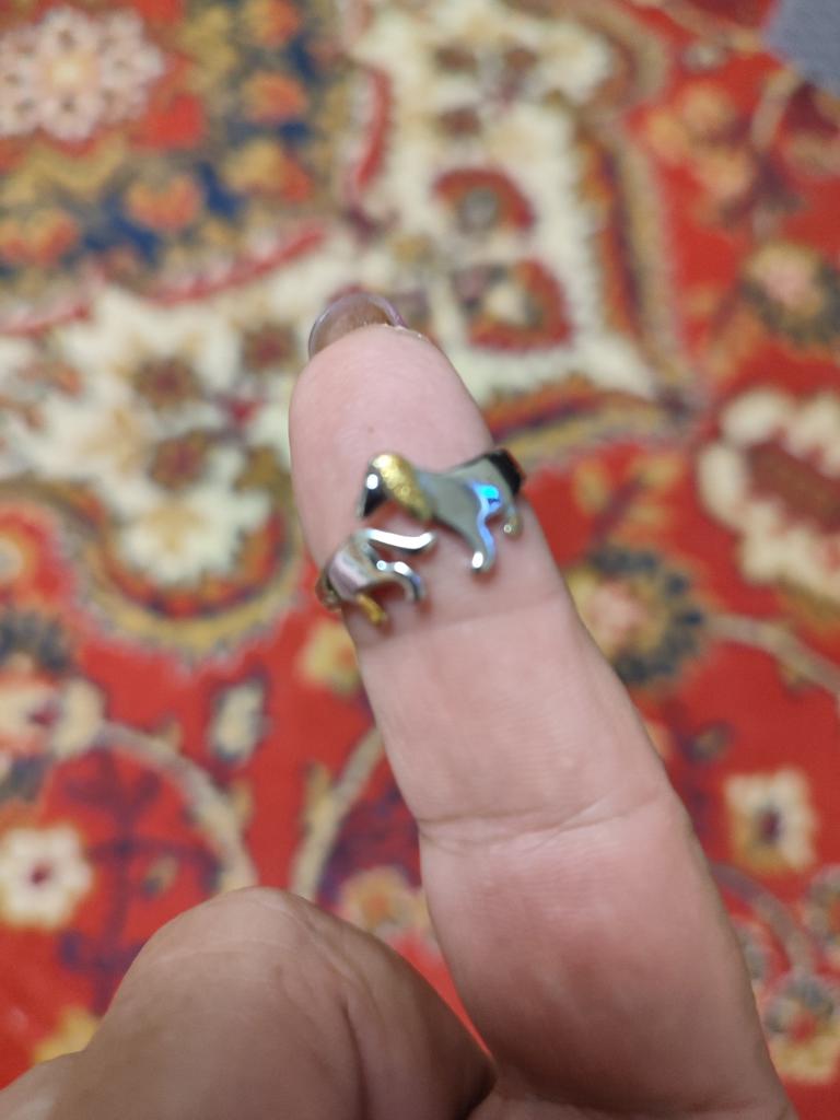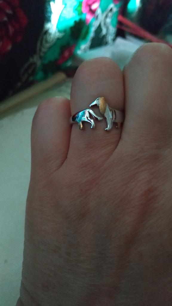 The ring is just lovely, especially since I love the dachshund dog breed, I simply adore this breed and I have rings and brooches and a collection of soft toys in the shape of dachshunds. I have a collection, although small, but I have one. I also have a dachshund at home, already the third. The first two, mother and daughter, lived before her and unfortunately they are no longer here, they died from the years they lived and from illnesses, and this one is only three years old, and I adore her. I simply love everything that is connected with dachshunds, with cats... and in general I love all kinds of animals... and even reptiles... but not all