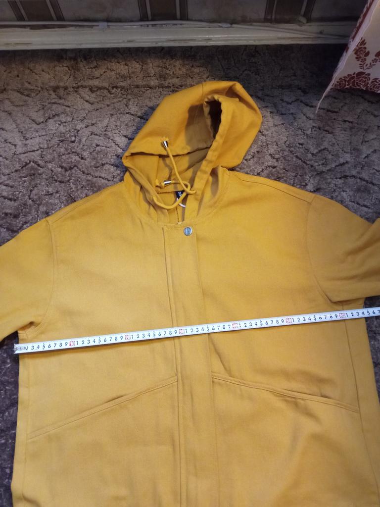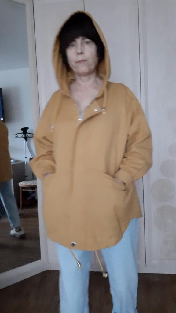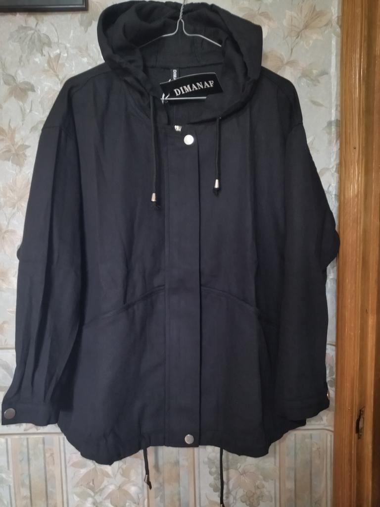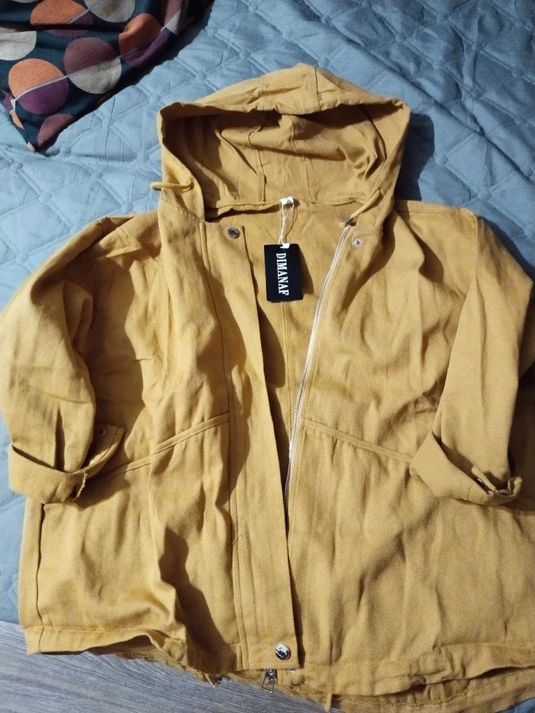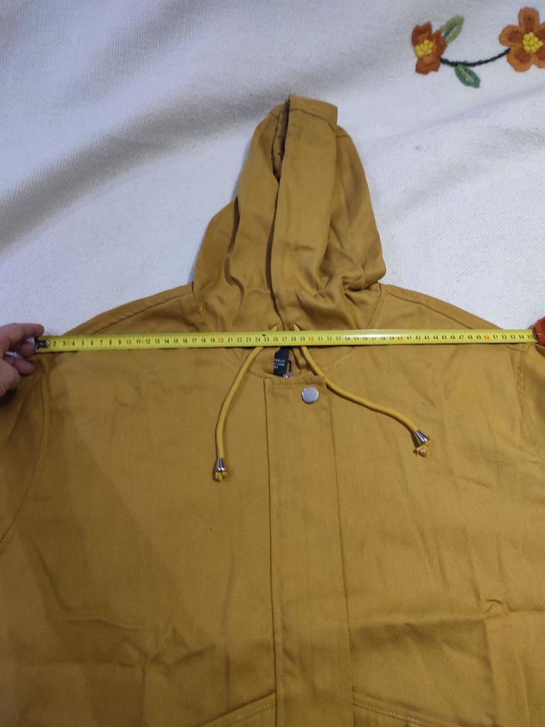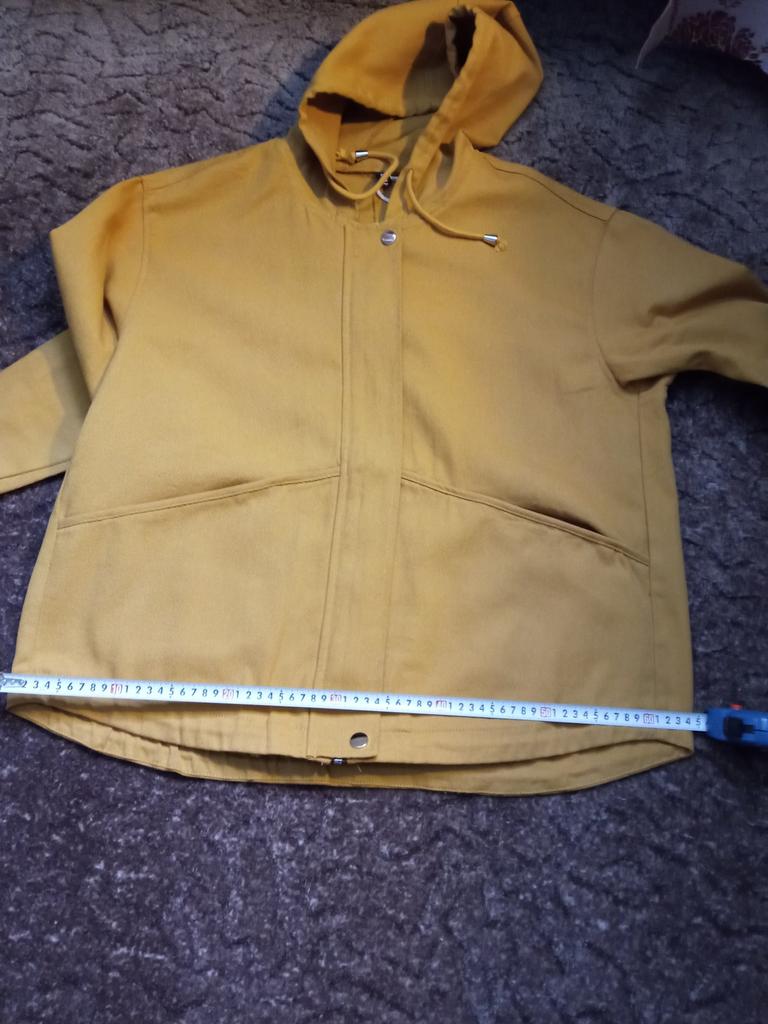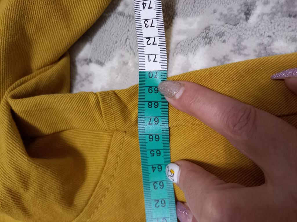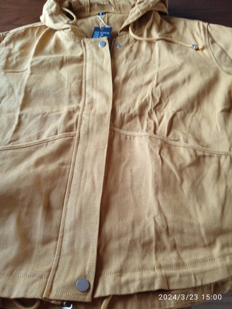 Beautiful jacket in denim fabric. Rather heavy in weight, but pleasant. Exactly one size as in the photo. My daughter likes it very much.