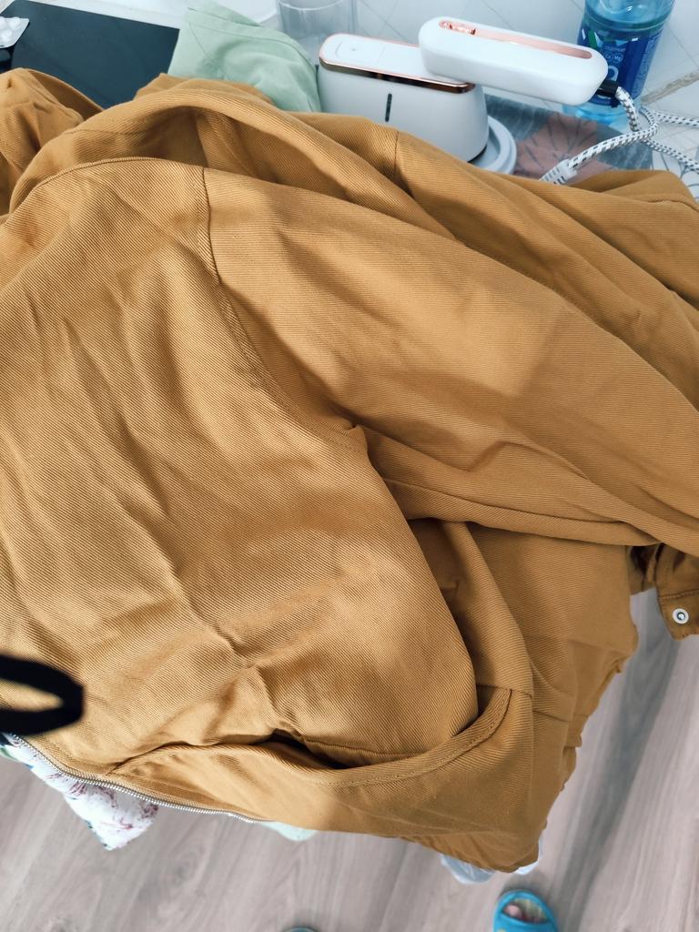 A good ordinary jacket, the most ordinary style. Sewn neatly, cotton. It won't be hot. I just didn’t like the color, either yellow or faded brown. Previously, people wore these in the forest to escape mosquitoes. I recommend.