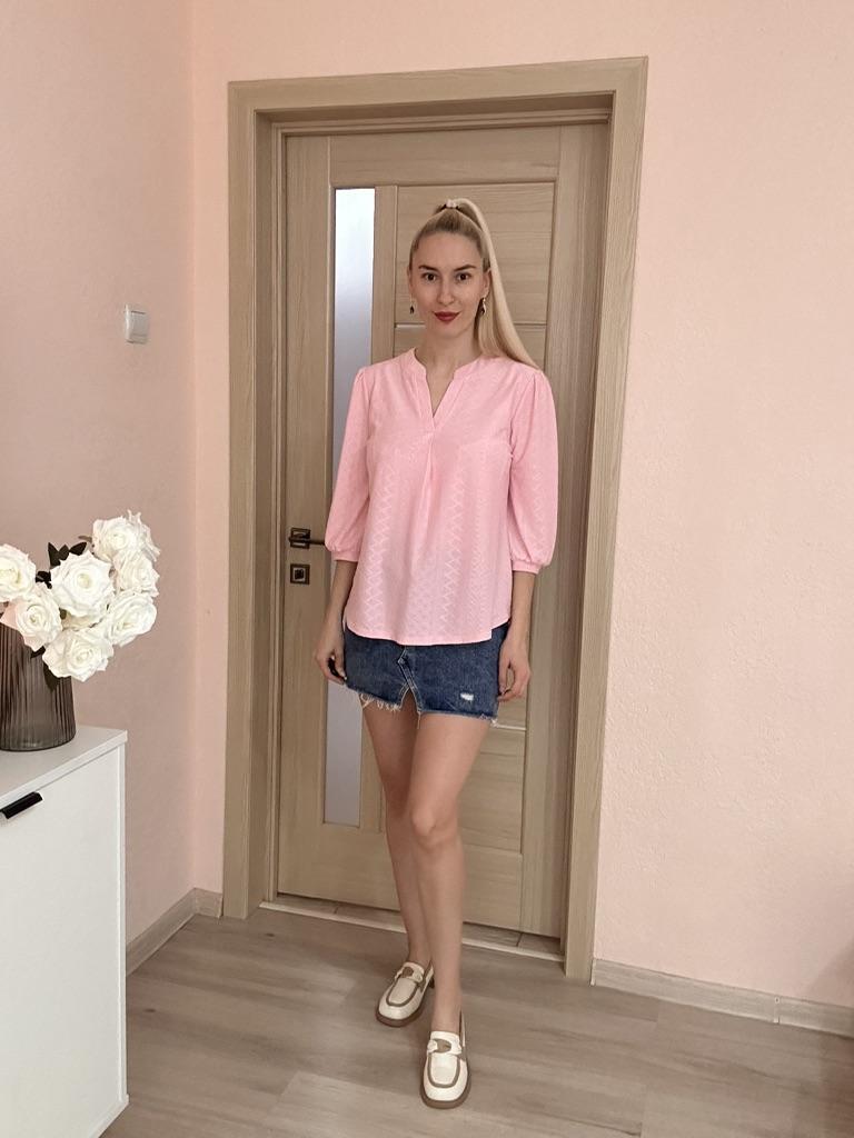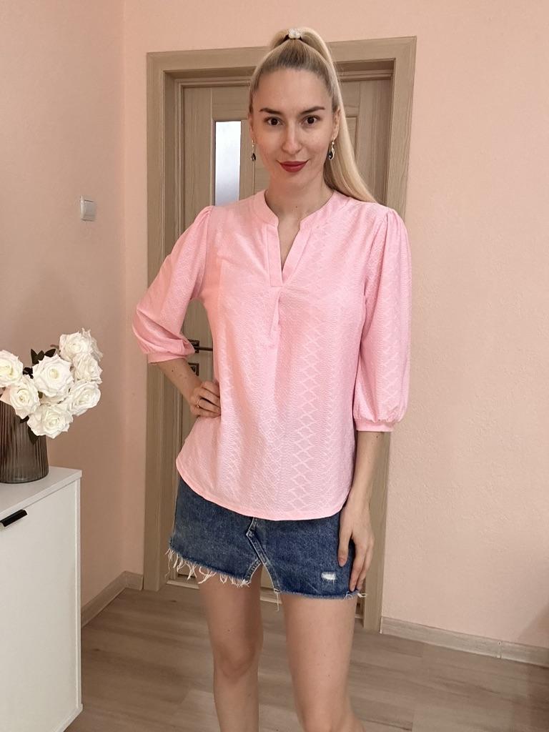 GMXIA Women's Fashion Casual Solid Color Print 3/4 Sleeve V Neck Blouses & Shirts