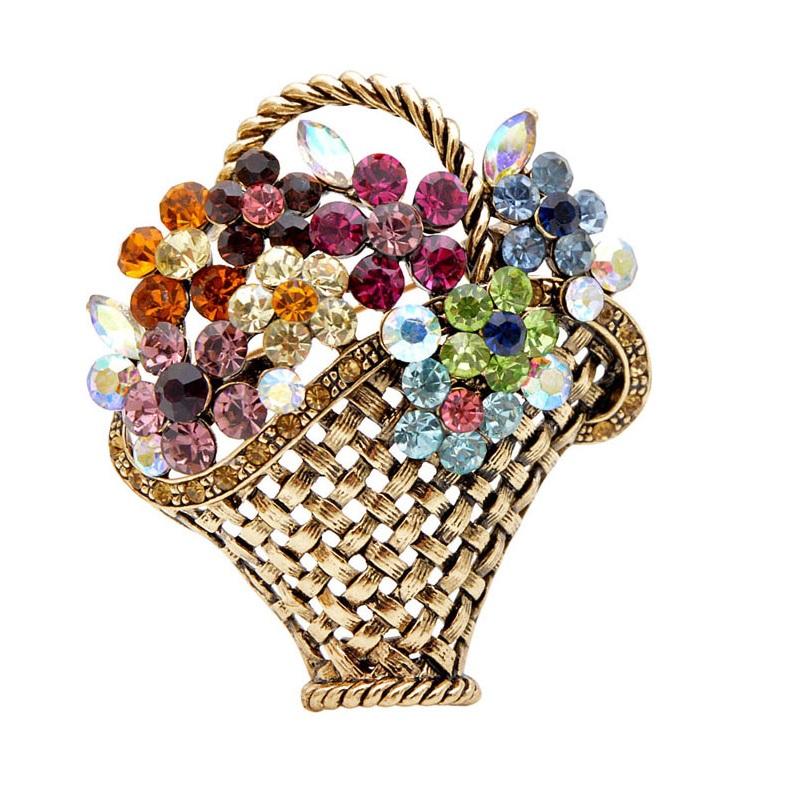 Creative Flower Basket Zircon Brooch Vintage Colorful Pins Women Fashion Jewelry Clothes Coat Decoration Scarf Buckle YSX