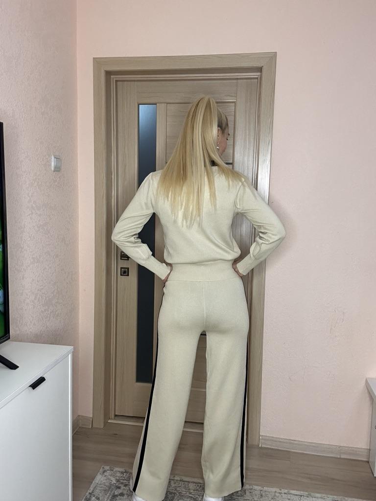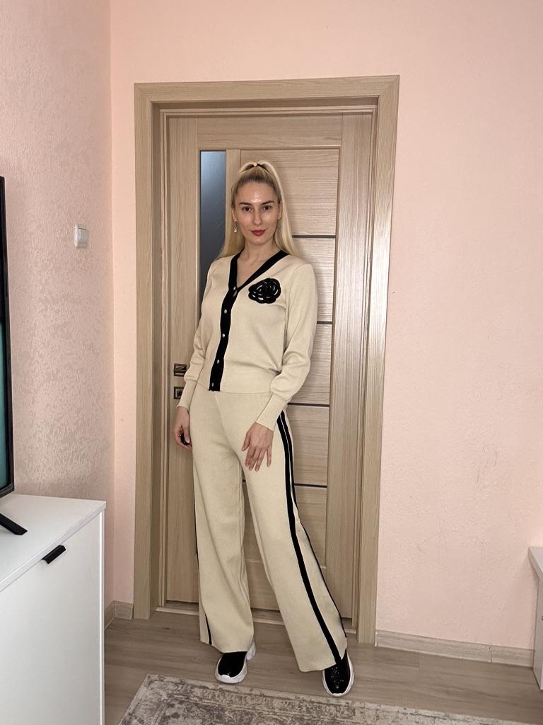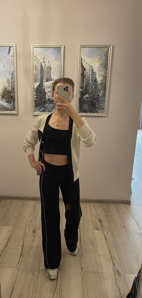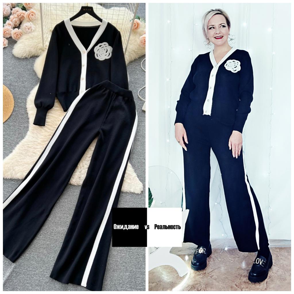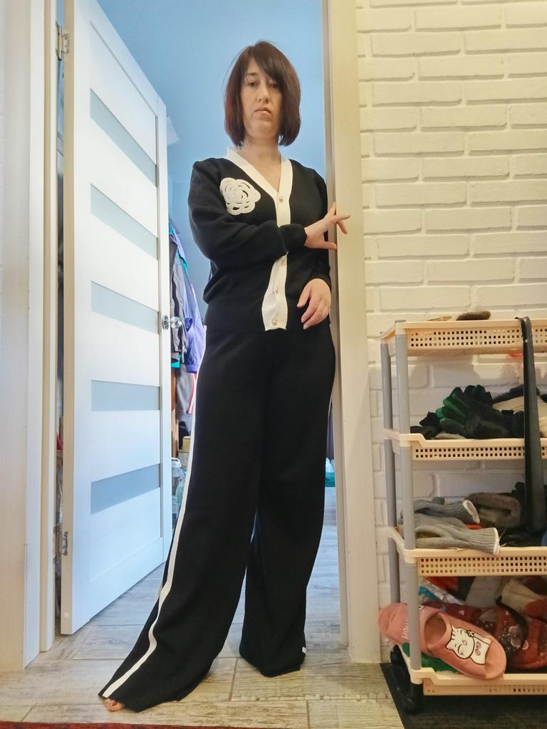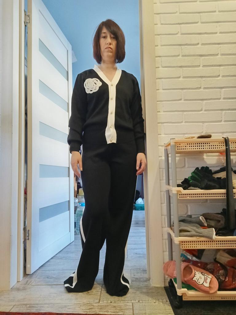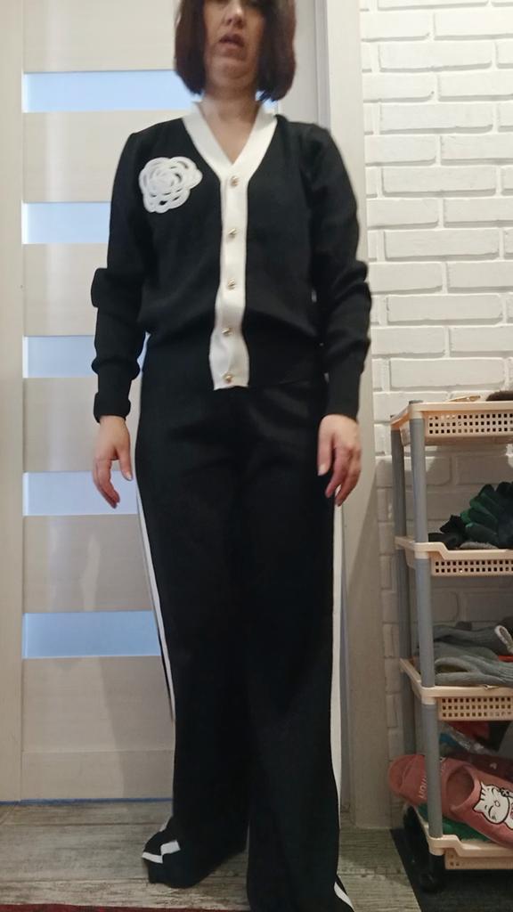 The suit is excellent. But only on skinny ones. My parameters: 164, 100/82/100 the cardigan is too small (((, but the trousers are good.