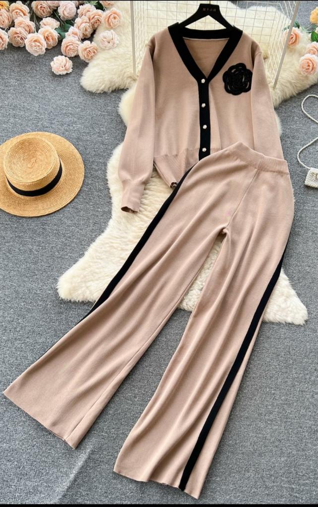 Celebrity High-end Casual Knit Fashion Set for Women Autumn Winter Loose Sleeved Shirt+high Waisted Draped Pants Two Pieces