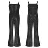 Kids Girls Sleeveless Gymnastics Leotard Jumpsuit Costume Halloween Sequins Bell Bottoms Jumpsuit